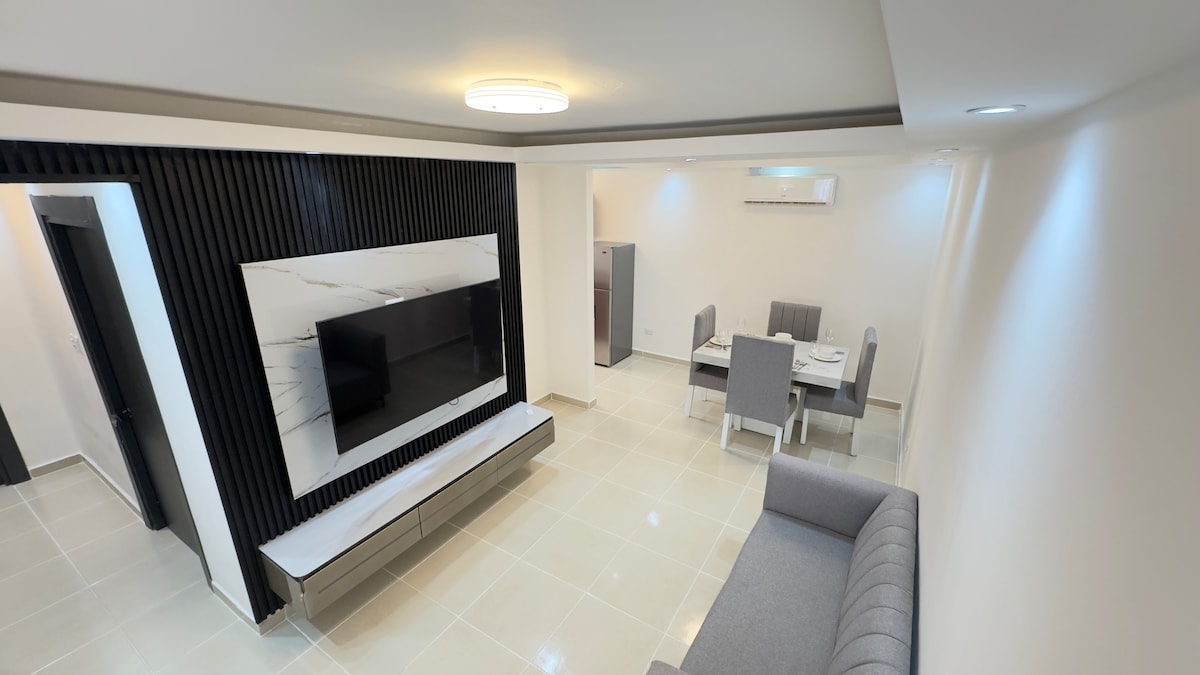 BRAND NEW- 1 Bedroom apartment: - 2 smart TV’s -2 new AC units -New washer & dryer - Safe - High speed internet - Smart front lock - LED lights - electric wine opener -blow dryer - Steamer - 1 parking space (under roof) Kitchen fully equipped (incl an air fryer) Rooftop Terrace: - PICUZZI + GYM with an amazing view. Location: - Downtown of SD. Safe neighborhood, and minutes from El malecón & Zona Colonial. Ask about the romantic set up with champagne or wine bottles and chocolate