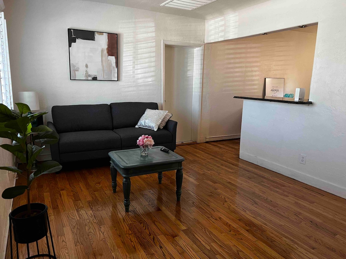Bienvenue dans notre studio moderne de 2 chambres et 1 salle de bain à El Paso ! Idéalement situé à seulement 10 minutes du centre-ville, de l'aéroport, de Ft. Bliss et Juarez, au Mexique. Cet espace entièrement rénové dispose d'un salon confortable avec une télévision 4K et une connexion Internet haut débit, d'une cuisine élégante avec des comptoirs en granit, des appareils en acier inoxydable et tous les éléments essentiels. Chaque chambre dispose d'un lit Queen Size confortable et la salle de bain est entièrement approvisionnée. Parfait pour les voyages en famille, d'affaires ou de loisirs : votre maison loin de chez vous !