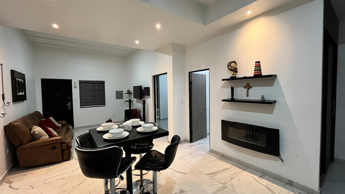 Bel appartement situé à quelques kilomètres du consulat américain, de la zone hôtelière, du parc central, de la gare routière et du centre commercial Las Misiones. L'espace dispose d'un lit Queen, d'une cuisine intégrée avec gril, d'un micro-ondes et d'un mini-réfrigérateur, d'un centre de lavage, d'une télévision intelligente et d'un espace pour travailler à distance avec votre bureau. À l'extérieur, il y a un espace commun, avec un espace pour jusqu'à 2 véhicules, il dispose d'un barbecue, d'une table de patio et aussi d'une paire de co-hôtes canins.