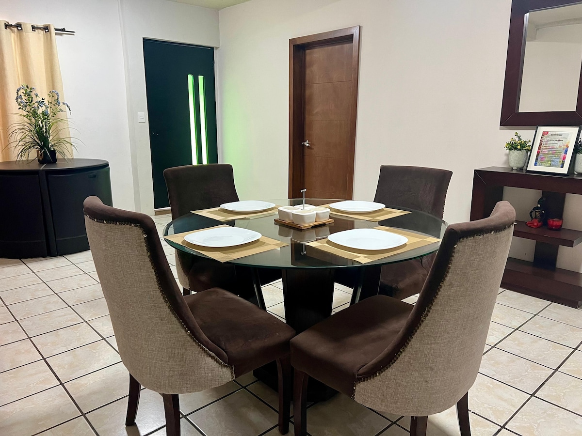Disfruta de este acogedor lugar que te hará sentir como en casa, la zona es muy tranquila, Ubicación céntrica con cercanía a Centros Comerciales, Parque recreativo IPSSET ideal para caminar o trotar al aire libre, se encuentra cerca un Oxxo, tienda de la esquina, gasolinera, a 5 minutos el tecnológico y Bodega Aurrera, el lugar es ideal para trabajo o descanso, para tu comodidad cuenta con A/C, Televisión con Netflix, estacionamiento con cochera y de fácil acceso.