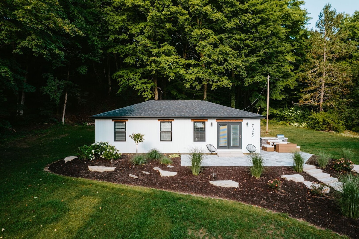 Bienvenue dans le chalet en A de Finch Creek, une escapade unique dans le nord du Michigan surplombant Finch Creek et entièrement entourée par la zone naturelle de Grass River. Nous avons entièrement rénové cette cabane des années 1970 et l'avons conçue pour qu'elle soit ouverte et en harmonie avec le paysage. Avec des plafonds voûtés de 6 mètres, de grandes baies vitrées, un foyer pour se détendre et à quelques minutes de certains des lacs les plus magnifiques de l'État, c'est le point de départ idéal pour explorer ou ne rien faire du tout.