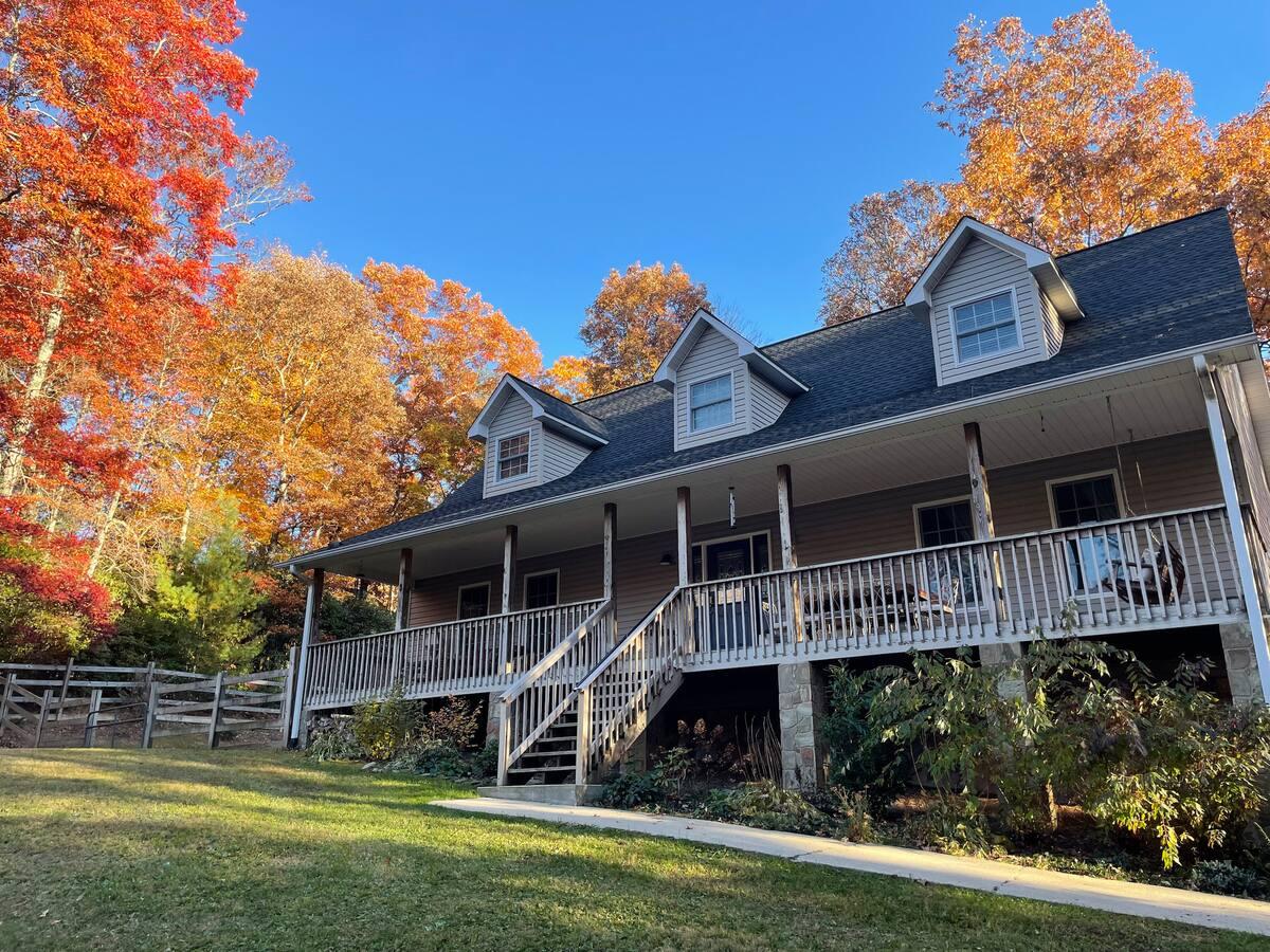 Woodridge Mountain Home Entire House with 50+ acres for your enjoyment One bedroom with king bed, one bath, queen sleeper sofa in the living area. Paved driveway and covered double parking. Open living area with a well equipped kitchen featuring granite counter tops. Central heat and air. Outdoor living includes a front and back deck with a fire pit and a gas grill. Just open the back door and your furry friend has a large fenced in area to play.