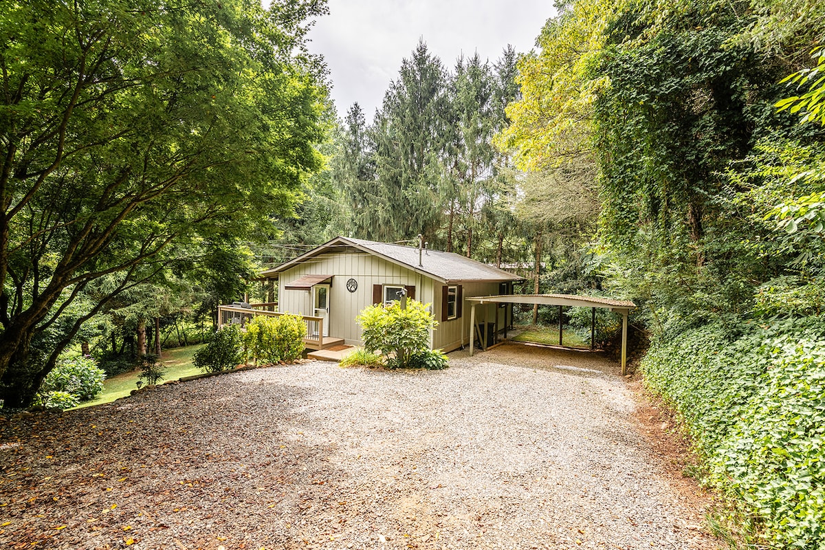 A private little slice of rustic, cozy cabin-living in the woods, less than a mile to historic Main Street in Clayton, GA. 100 year-old cabin on 1 1/2 lush, secluded acres. Smile-inducing "Rainbow Dawnkey" paintings and artistic touches throughout. TVs, dart board, games, large eat/work island. Wake to the sound of pileated woodpeckers and neighborhood rooster. Close to trails, waterfalls and Chattooga river. Enjoy award-winning food and drinks in town.