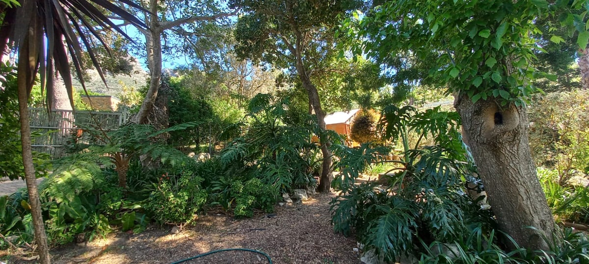 Ce chalet indépendant sur notre propriété privée est situé dans la région de Bishopscourt du Cap-Occidental. Le chalet est un salon ouvert, une chambre avec deux grandes vérandas, une kitchenette et une grande salle de bains avec douche et baignoire qui s'ouvre sur un balcon très privé avec chaises longues et douche extérieure. Avec une vue magnifique sur la montagne et les terrains, on peut se détendre pleinement dans ce chalet plus que spacieux. Ce chalet privé sera entièrement à vous pendant votre séjour. Il y a plusieurs espaces de détente à l'intérieur et à l'extérieur du chalet. Notre femme de ménage de longue date, Maks, sera là pour s'occuper de vous et s'assurer que vous avez toujours ce dont vous avez besoin. Elle nettoie et fait la lessive tous les jours sauf le dimanche. Situé à distance de marche de nombreuses randonnées, sentiers pédestres, pistes cyclables et de VTT magnifiques. Il y a beaucoup d'endroits à proximité où vous pouvez louer des vélos et il y a beaucoup de rangement dans la maison pour les vélos. Il y a un grand parking sécurisé sur notre propriété pour le véhicule que vous amenez pour votre séjour. Je suis généralement ici et je serai très heureux de vous aider avec des conseils à tout moment. Ce logement se trouve dans un quartier résidentiel calme avec de belles maisons et des rues verdoyantes. Proche des jardins botaniques et de la ville. Uber disponible. Parking sécurisé sur le terrain de la propriété. Pas besoin d'unités de climatisation car l'air de la montagne le matin et le soir sera frais et vif toute l'année. Il y a un ventilateur de plafond, si vous avez besoin d'un refroidissement supplémentaire. Serviettes, serviettes de plage, panier de pique-nique tous disponibles au chalet. L'espace est d'environ 60 m² +