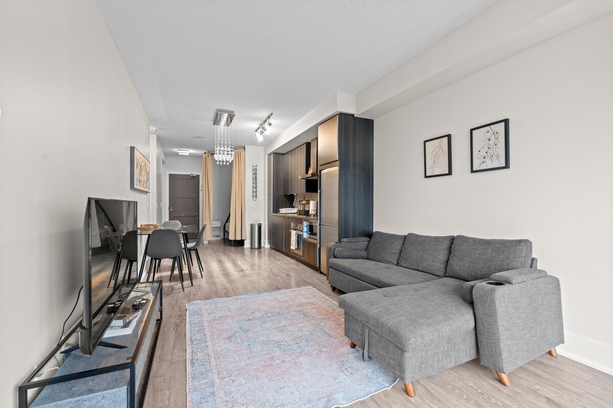 Un appartement nouvellement meublé situé au cœur du centre-ville de Toronto garanti pour maximiser votre séjour avec tout à proximité. Cette copropriété dispose de plafonds de 10 pieds et de plus de 700 pieds carrés Nous fournissons une connexion Wi-Fi haut débit, une télévision par câble, un lave-linge/sèche-linge et des équipements de base. Explorez Toronto juste à votre porte : - Centre des congrès du Grand Toronto à 30 m - Tour CN/Rogers Centre 210m - Union Station 500m - Harbourfront Centre 700m - Air Canada Centre 900 m - TIFF Bell Lightbox.
