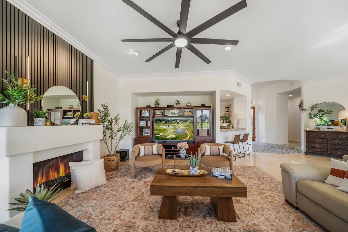 Embarquez pour une escapade sereine à la « Casa Tranquila ». ☀︎ Votre confort est notre engagement : vivez une escapade inégalée ! Piscine → spectaculaire et oasis de spa : piscine d'eau salée, spa chauffé, avec vue panoramique sur le terrain de golf et la montagne. Paradis au→ bord de la piscine et centre de divertissement : magie du coucher de soleil et festins de barbecue près du grand foyer, avec des défis de jeux de palets et de baby-foot avec des amis. → Nouveau bar clandestin pour le poker, le billard, le ping-pong, les fléchettes et les sports en direct à la télévision. Votre séjour inoubliable vous attend — RÉSERVEZ MAINTENANT !