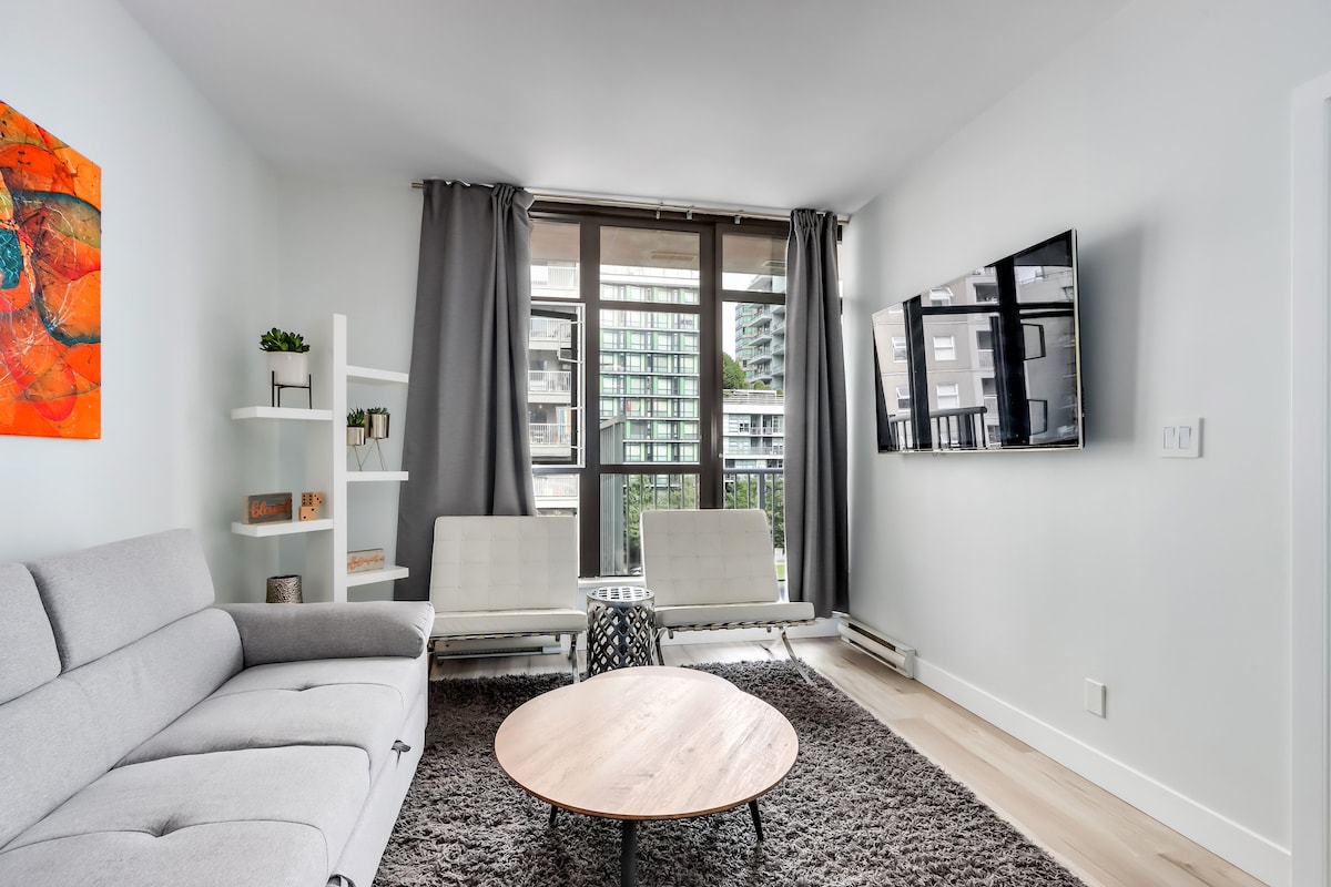 Suite 1 chambre récemment rénovée située au cœur du centre-ville. Découvrez le meilleur de Vancouver : à deux minutes à pied de la Rogers Arena, du BC Place, du Parq Casino, de False Creek, de Yaletown et de Gastown. Station de Skytrain à votre porte pour un transport en commun facile ainsi qu'une épicerie, des restaurants et des cafés. Accès facile au centre-ville et à l'extérieur si vous recherchez une aventure en dehors de la ville !