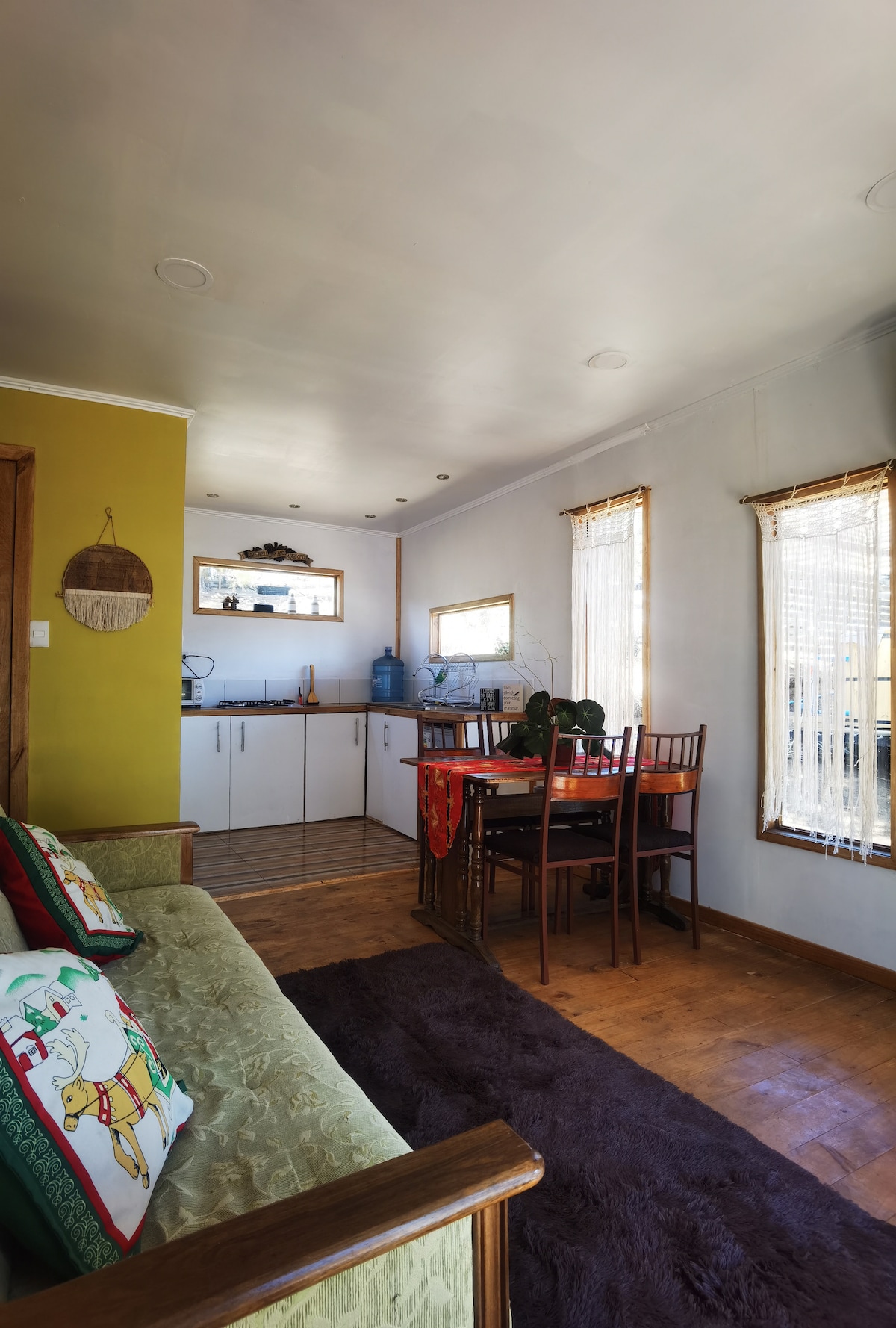 Lugar ideal para quienes quieran desconectarse y tener una experiencia diferente en un lugar 100% naturaleza con una imponente vista al mar, la cabaña se encuentra en medio de un bosque de pinos, ideal para conectarse con la naturaleza y el silencio. La casa es auto sustentable, rústica y sencilla, el gran atractivo es su privilegiada ubicación y su imponente vista. Las puestas de sol al igual que las noches estrelladas son un espectáculo.