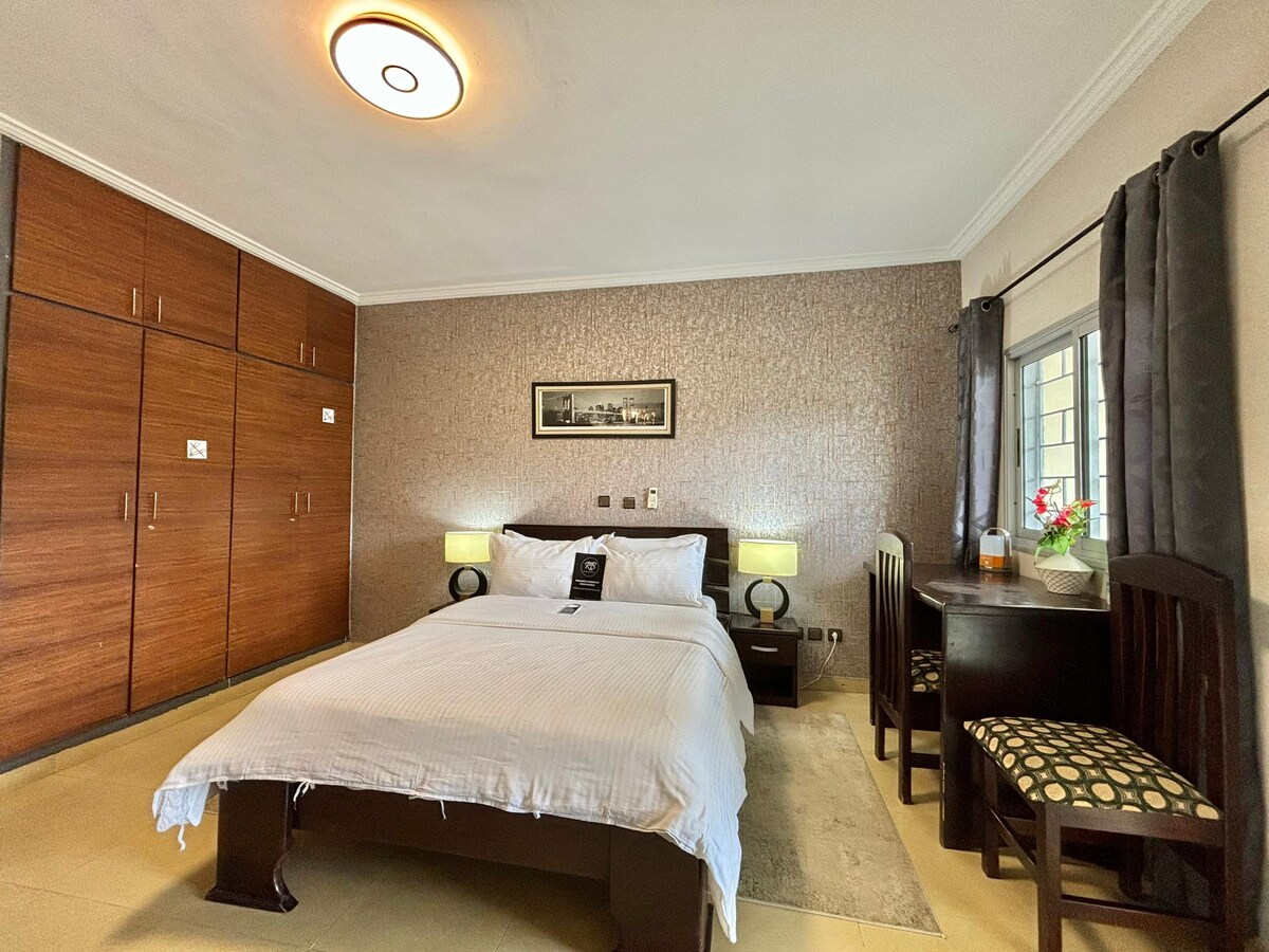 Idéalement situé au coeur d'Abidjan à la Riviéra Golf, ce bel appartement moderne vous accueillera aussi bien pour un séjour professionnel que personnel. Les grands espaces et tous les équipements ont été pensés pour vous permettre de passer un moment agréable tout en vous sentant comme chez vous. Avec en prime un rooftop pour admirer paisiblement le coucher du soleil. Boulangerie, banque, supermarché et de nombreuses commodités à moins de 5 min. Accès facile au plateau, à Marcory, Cocody...