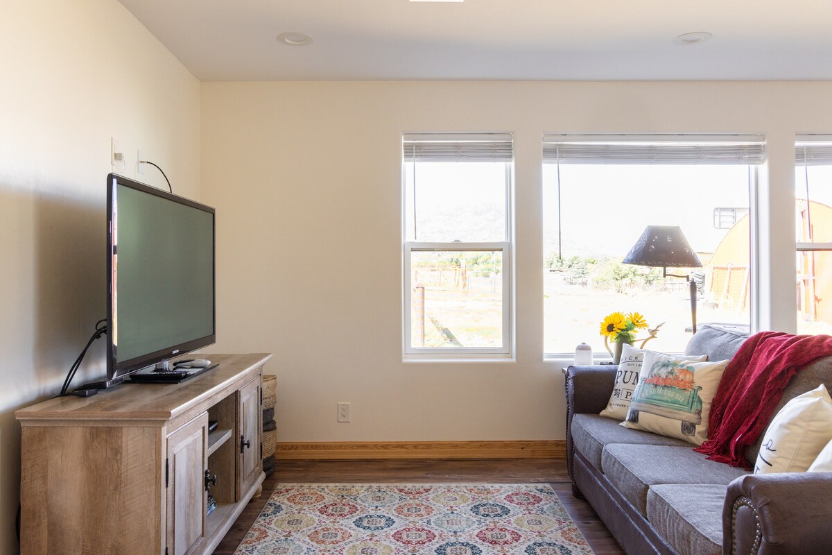 Nous serions ravis de vous accueillir à The Barn, situé sur un acre de campagne dans la ceinture verte luxuriante de Cornville, à distance de marche d'Oak Creek et entouré d'arbres fruitiers et de noyers matures. Retrouvez-nous à la porte de la région viticole de Page Springs, juste à l'extérieur de Sedona, des restaurants et boutiques populaires de la vieille ville de Cottonwood et de la ville fantôme historique de Jerome. Notre séjour est spécial car il comprend des boissons et des aliments gratuits dans notre propre restaurant social et notre marché situé en ville à seulement 2 miles.