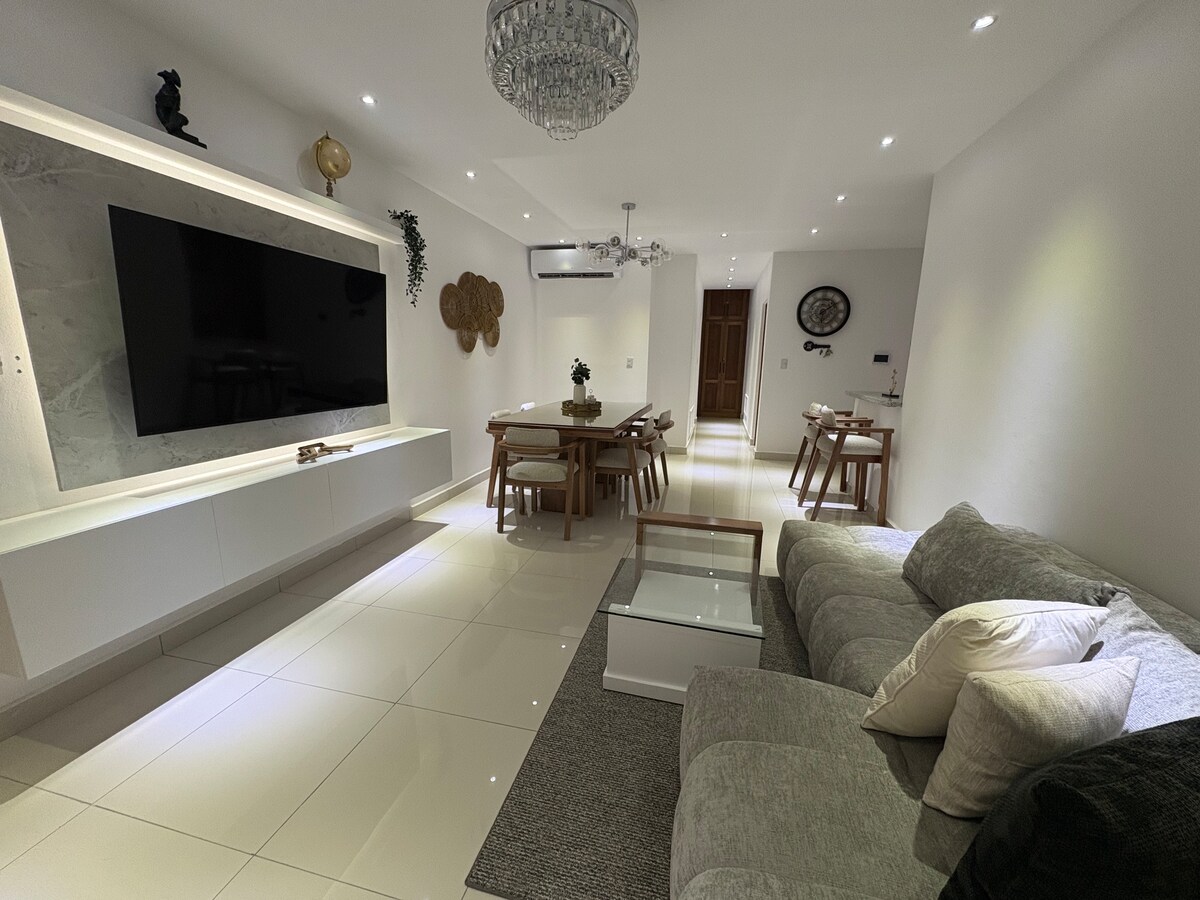 Suite spacieuse de 2 chambres parfaite pour votre escapade dans les Caraïbes ! Jetez un œil aux photos - tout est neuf (construit en janvier 2020) et vous êtes au cœur de Puerto Plata, à 1 minute de la plage avec toutes les commodités. - Salon confortable avec télévision connectée - Cuisine équipée avec ustensiles de cuisine ; - Climatisation et chauffage centraux ; -lave-linge sèche-linge - 2 salles de bain complètes recouvertes de marbre ; - Dressings ; - Wi-Fi gratuit Ce logement est parfait pour les séjours courts et longs ! Réductions au mois/à la semaine disponibles.