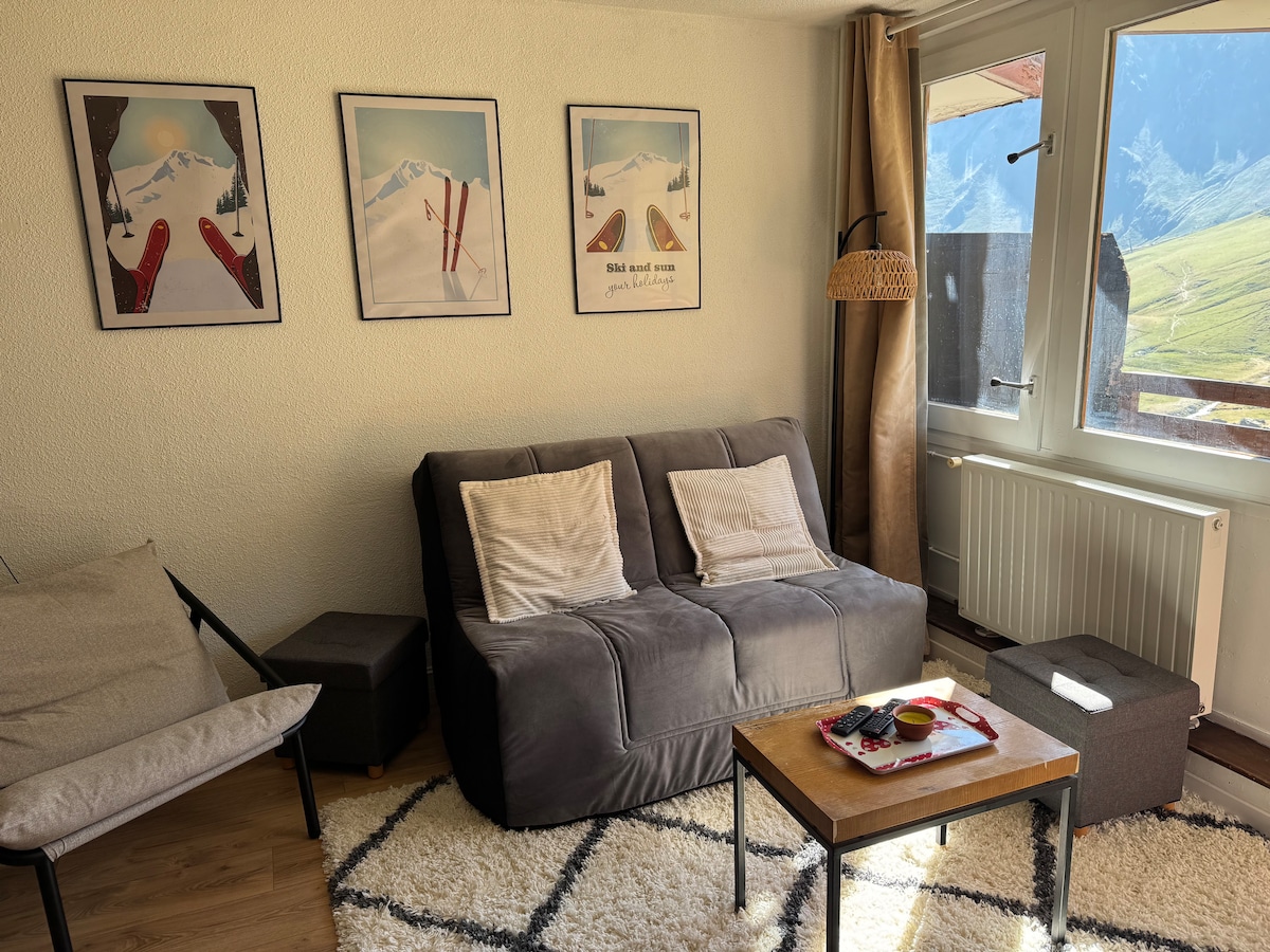 studio 4 personnes entièrement rénové aout 2022.Situé au 1 étage avec ascenseur au pied des pistes . parking gratuit. galerie marchande au rdc (bar/ resto/presse/superette/école de ski/ billetterie).le logement comprend 2 lit en 140x190 superpose, tv129cm TNT, commode avec de nombreux rangements, une cuisine équipée , une grande salle de bain, terrasse de 18m² exposé plein sud face au pistes +cellier en face du studio pour ranger vos affaires de ski et vos valises . Animaux accepté(-de 10kg).