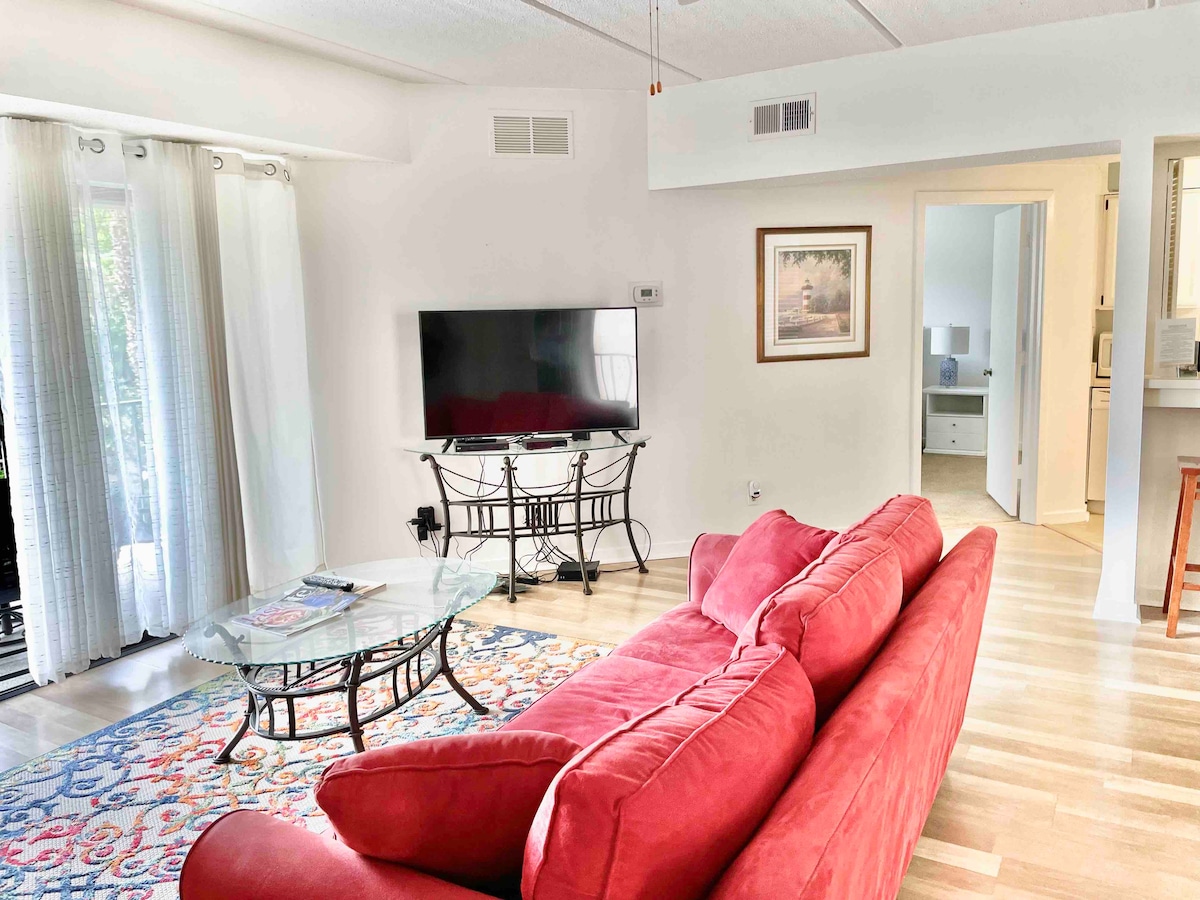 Venez vous détendre et profiter de Hilton Head sur South Forest Beach, la partie la plus populaire de l'île. Utilisez nos vélos gratuits pour un voyage rapide à Coligny Plaza où se trouvent les boutiques et restaurants pittoresques. La plage se trouve à 2 minutes à pied ou moins et la piscine se trouve juste en bas du couloir. Notre appartement est petit, mais parfait pour une escapade en couple ou un voyage mémorable avec les enfants. Nous avons tout ce dont vous avez besoin pour vous sentir comme chez vous avec des appareils de cuisine de grande taille et une buanderie juste à côté.