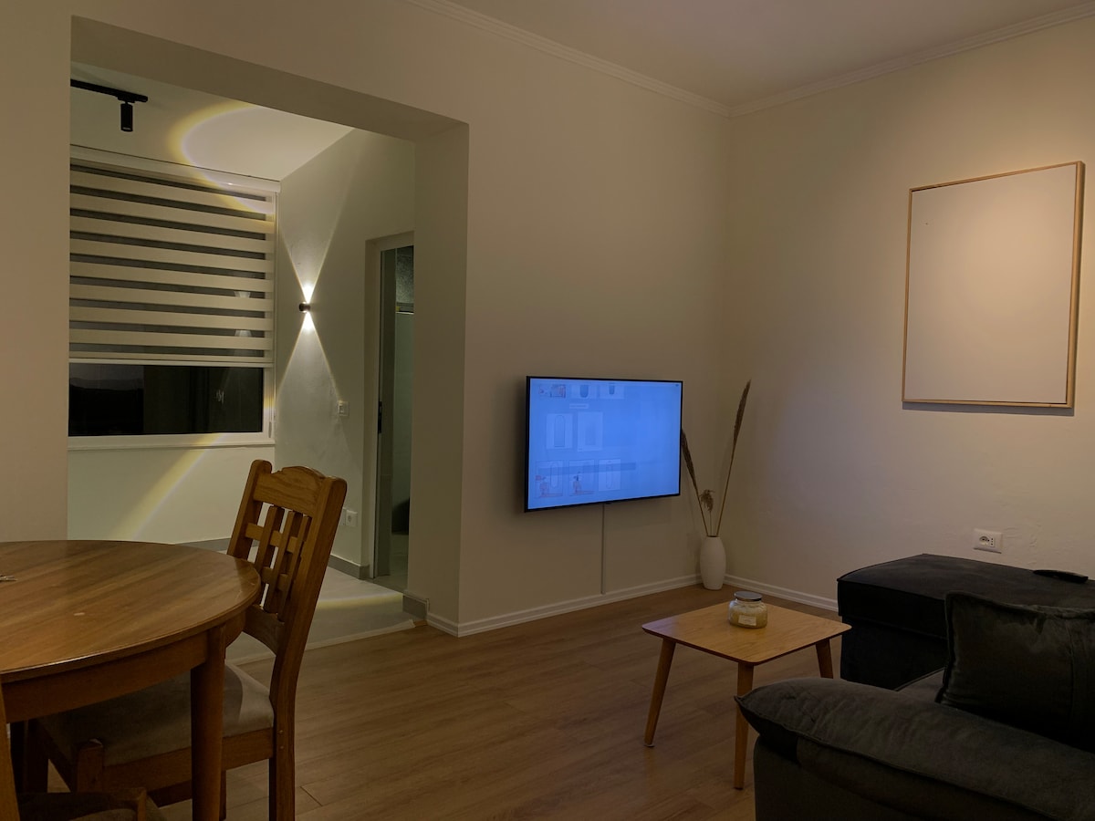 Bienvenue à Rustic Home Tirana 17, un studio confortable et magnifiquement décoré qui allie parfaitement charme rustique et confort moderne. Cet espace accueillant est idéal pour les couples ou les petits groupes qui cherchent à découvrir l'atmosphère vibrante et les attractions culturelles de Tirana. Studio ouvert confortable avec un lit double et un canapé-lit, idéal pour 4 personnes maximum. Profitez du divertissement avec une télévision HD 65" avec Disney+ et Netflix. Le stationnement gratuit dans la rue et le Wi-Fi rapide rendent votre séjour pratique et sans tracas.