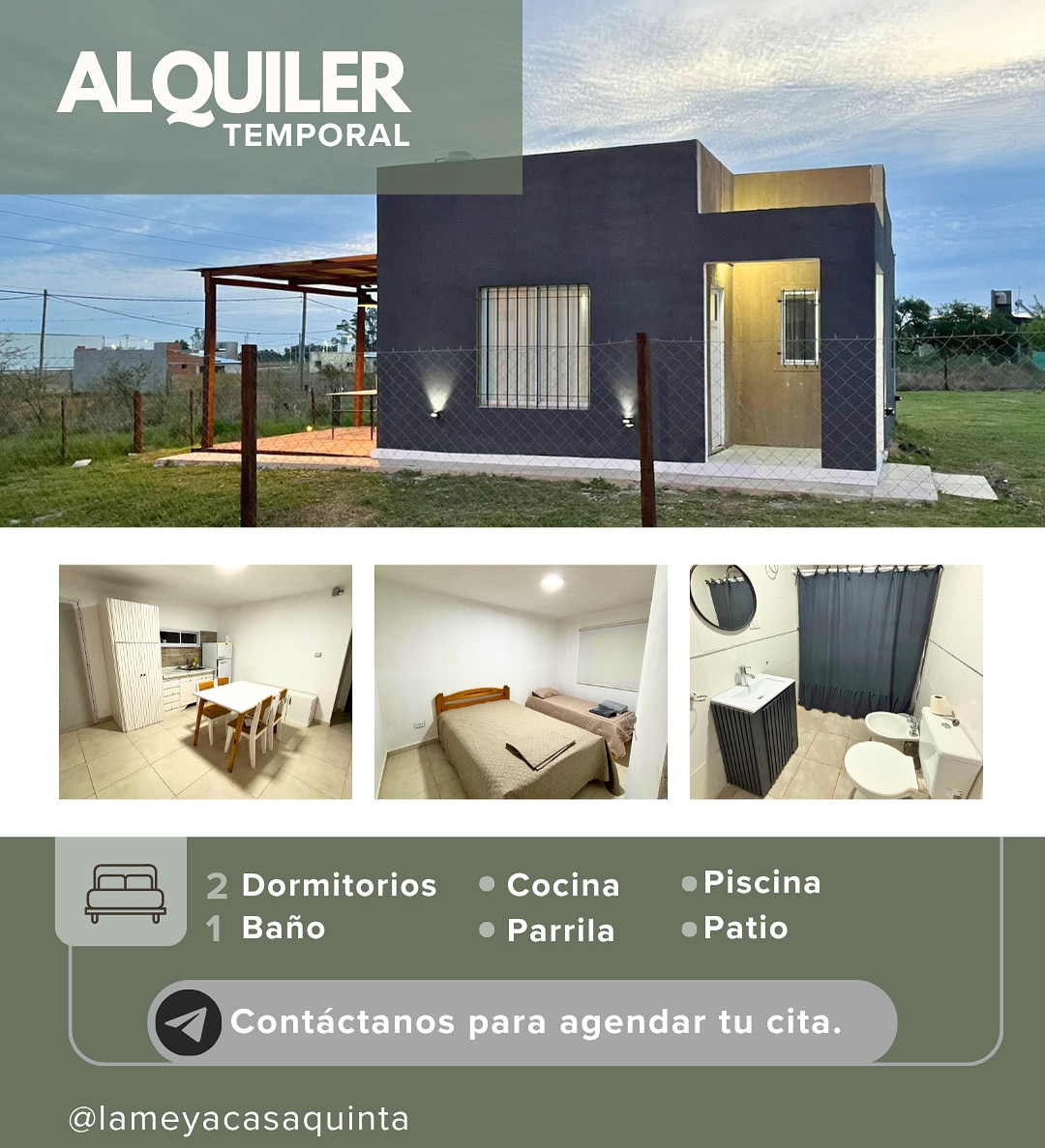 Chacra pour 7 personnes avec piscine, conçue pour vivre des moments uniques en pleine nature. Entourée de verdure et de tranquillité, c'est l'endroit idéal pour se déconnecter du rythme quotidien et se reconnecter avec la simplicité. Ses grands espaces invitent au repos, aux réunions en plein air et aux journées ensoleillées au bord de la piscine. Entièrement équipée pour un séjour confortable, elle allie intimité, nature et confort, parfaite pour des escapades en famille ou entre amis.