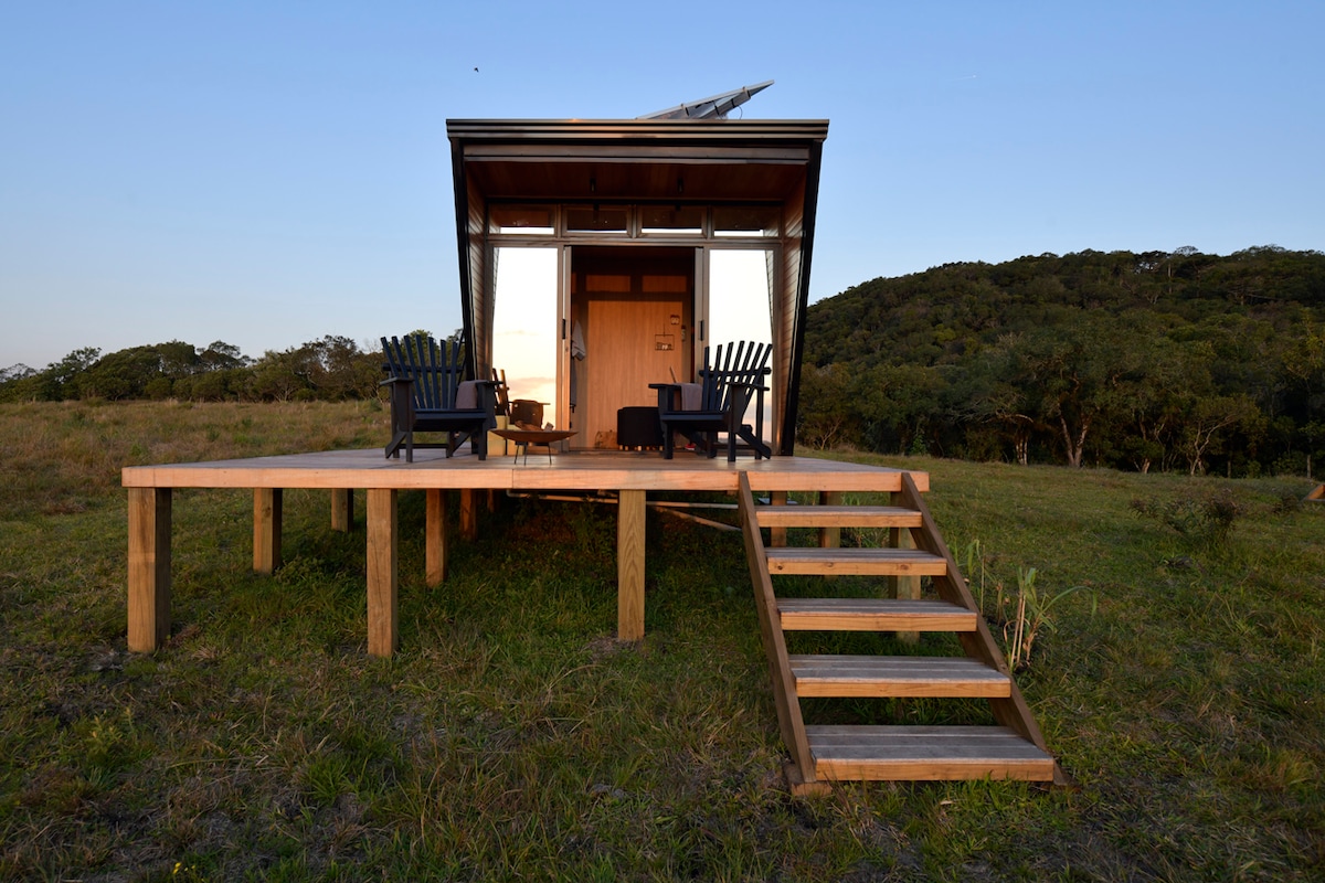 Tiny house 100 % autonome et durable située dans l'un des plus beaux endroits de Campos Gerais. La maison fait face à un coucher de soleil inoubliable à São Luiz do Purunã. Vivez une expérience unique et inspirante à seulement 30 minutes de Curitiba. Pour être en couple ou en famille et profiter de moments de contact avec la nature. Vous aurez l'occasion de vivre une expérience durable unique et pourrez améliorer votre conscience de la consommation des ressources naturelles.