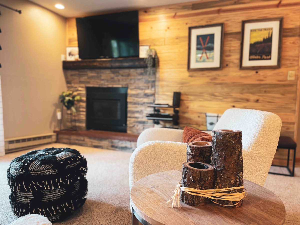Cet appartement d'une chambre et d'une salle de bain offre tout le nécessaire pour votre séjour et la lumière et le plan d'étage ouvert vous font vous sentir comme chez vous. Situé à distance de marche des sentiers, de l'arrêt de navette, du supermarché, des cafés, des restaurants locaux et à seulement 8 minutes en voiture de la base de Winter Park. Un petit étang avec des bancs et une vue sur la montagne se trouve derrière le logement, offrant un espace extérieur supplémentaire à portée de main.