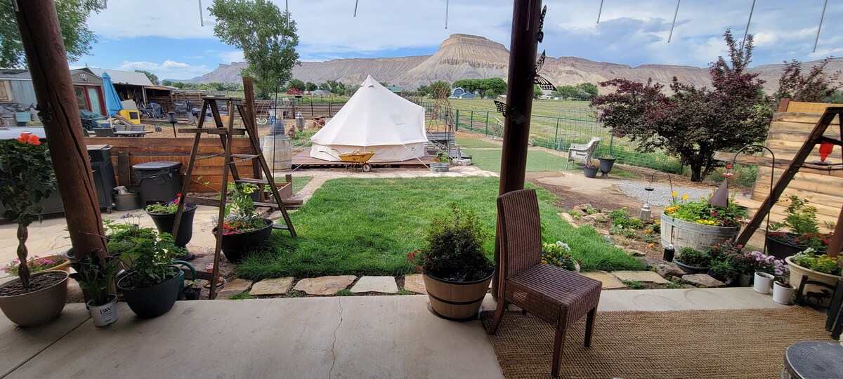 Bienvenue à la tente Palisade à Gateway Glamping. Notre propriété est parfaitement adaptée aux adultes, alors veuillez laisser vos enfants et vos animaux de compagnie à la maison. Votre tente est entièrement meublée avec un lit King Size, des draps moelleux et un espace repas/cuisine extérieur privé avec barbecue et cuisine de camping + une chimenea. Profitez de l'accès à la piscine cowboy, au salon commun et aux bains partagés, parfaits pour votre camp de base pendant que vous explorez le canyon du Colorado.