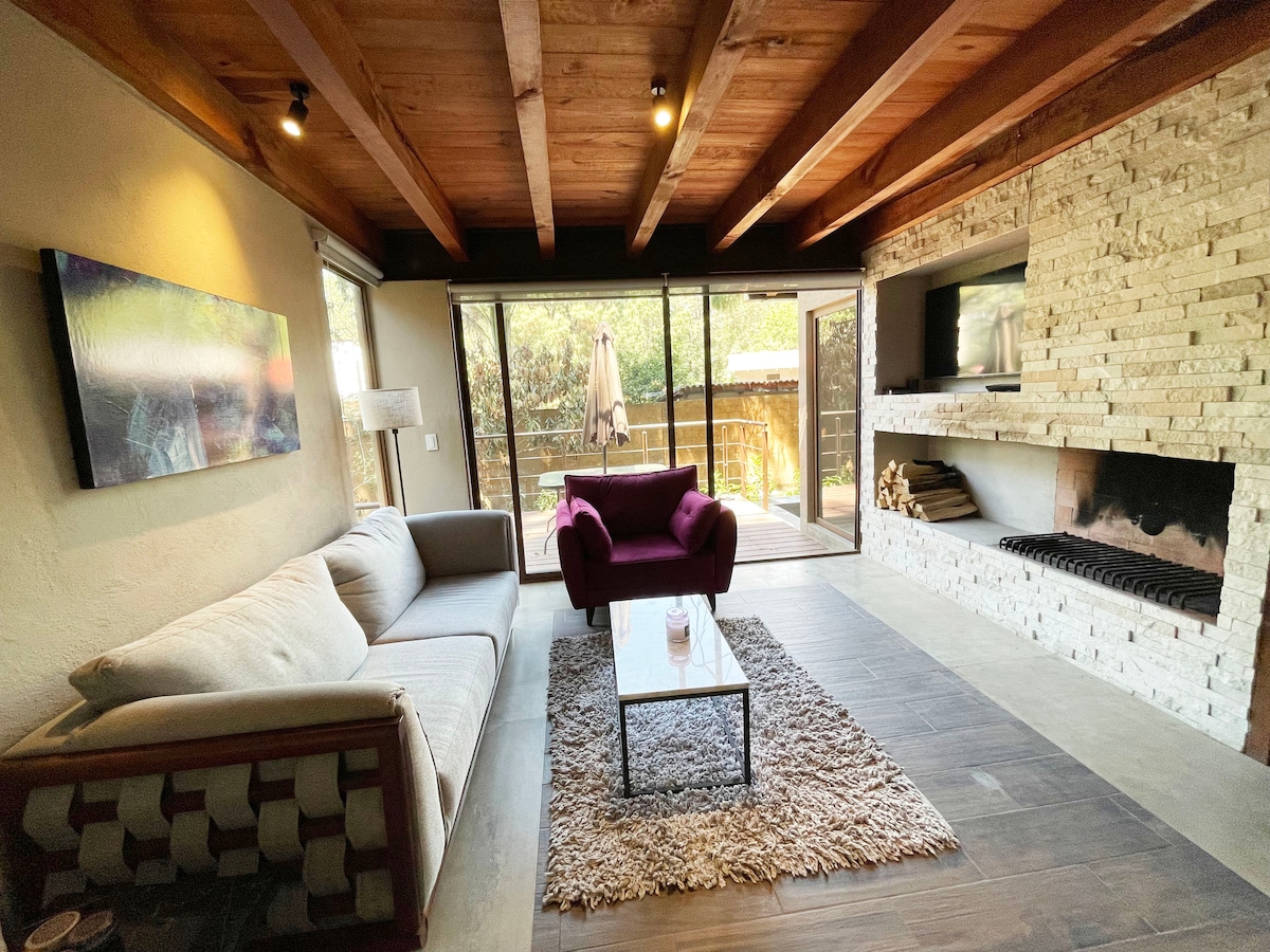 Réveillez-vous parmi les arbres et la lumière naturelle à Casita Woods, un refuge chaleureux et élégant au milieu de la forêt de Valle de Bravo. Parfait pour déconnecter, lire au coin du feu ou profiter d'un café sur la terrasse entourée de verdure. À quelques minutes du lac et du centre, mais suffisamment loin pour ressentir une paix totale. Idéal pour les escapades romantiques ou une pause créative dans la nature.