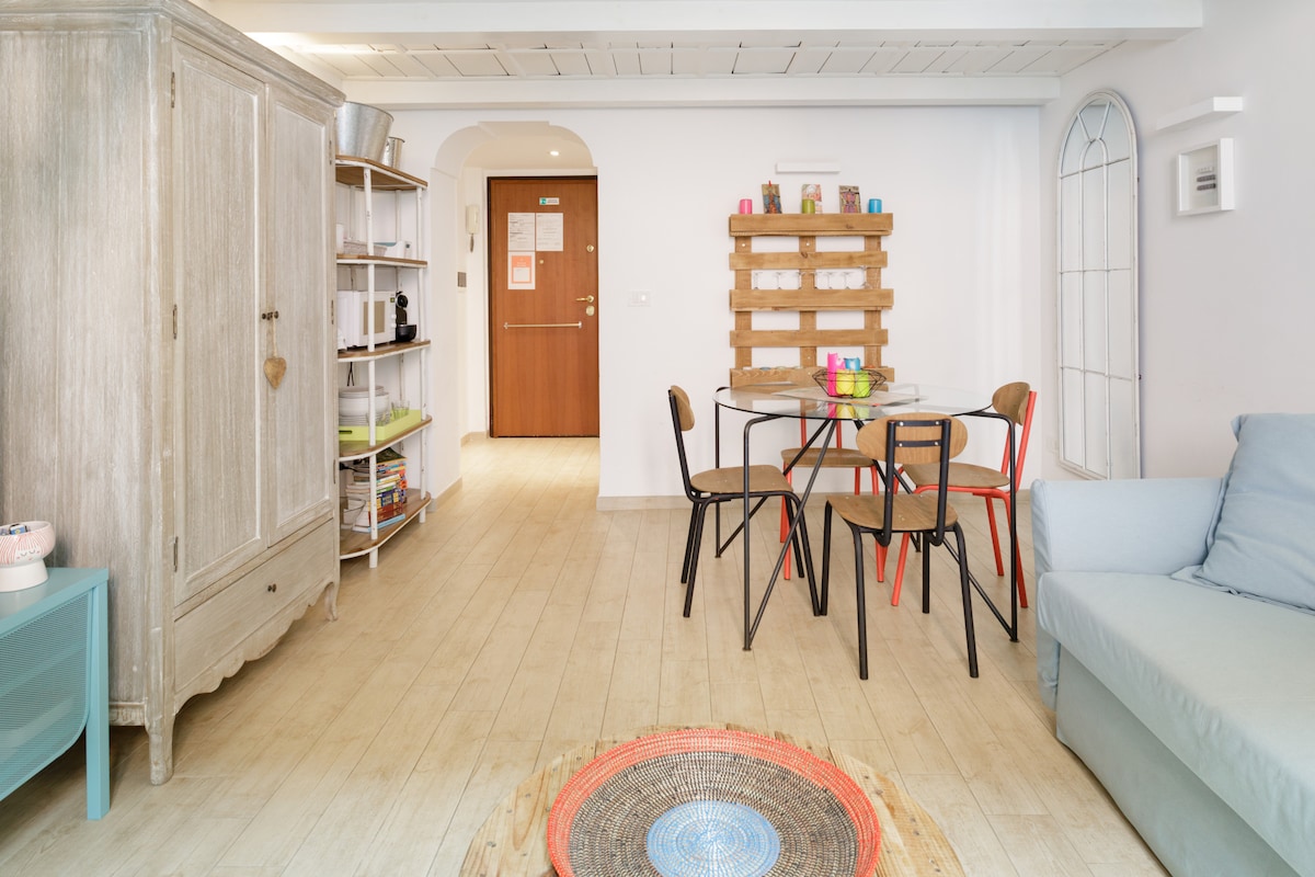 Appartement situé dans le centre historique de Rome, à quelques pas du Colisée, du Forum Romain, du Palatin et du Cirque Maxime. Dans un quartier calme, il allie style et confort et est idéal pour un couple ou un couple avec un enfant. Tous les services sont accessibles à pied. Métro Colosseo à 2 minutes, station de taxis à 50 mètres. Quartier animé, réputé pour ses restaurants et pizzerias.