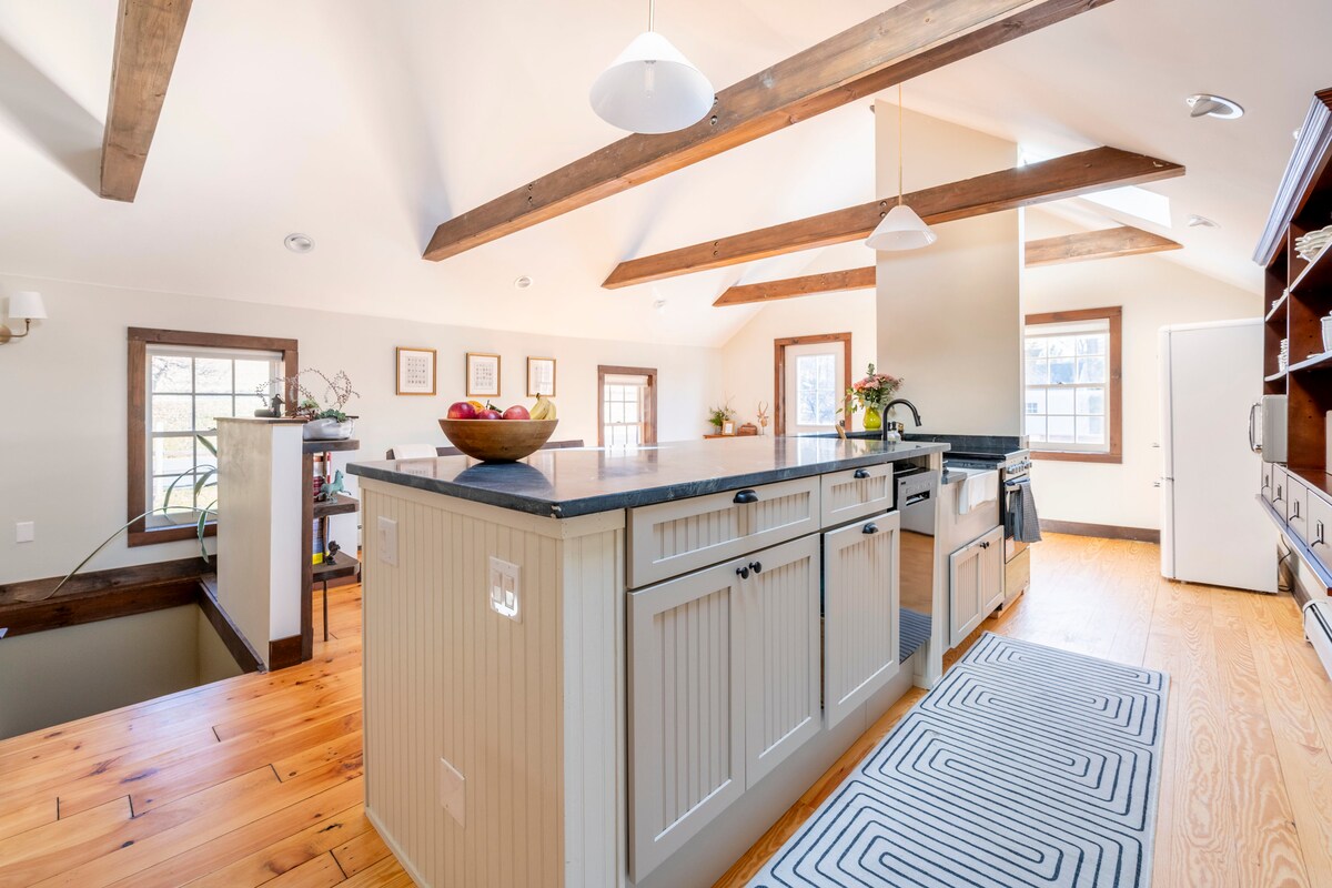Venez profiter des Berkshires dans une grange en poteaux et poutres récemment rénovée. Situé à distance de marche d'Egremont et à quelques minutes en voiture de la charmante ville de Great Barrington, où vous trouverez de nombreux commerces et restaurants. Envie de musique ? Faites une courte promenade et vous êtes dans l'un des meilleurs lieux de musique des Berkshires. Cet espace est de plain-pied et dispose de deux chambres séparées et d'un lit de jour/lit gigogne. La cuisine n'a pas de four, mais vous pouvez utiliser la plaque de cuisson à induction pour préparer des repas faciles.
