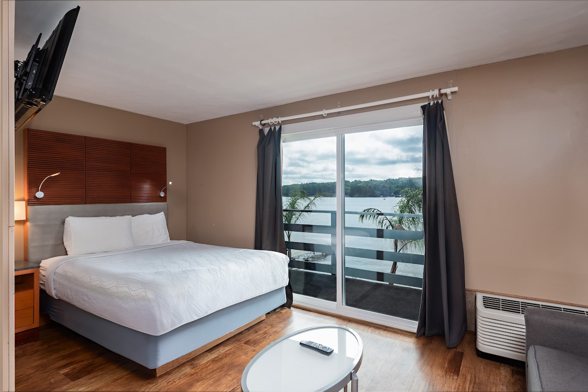 Profitez d'un séjour relaxant dans notre chambre double queen size avec balcon privé. Les voyageurs peuvent se détendre avec une vue sur le lac et un accès facile à la plage dans notre charmant complexe hôtelier. À quelques minutes des attractions de Wisconsin Dells, notre complexe ouvert toute l'année propose des activités sans fin et une atmosphère sereine, parfaite pour créer des souvenirs durables. Que ce soit l'aventure ou la détente, vous les trouverez ici sur les rives du lac Delton. Frais de séjour : 20 $/chambre/nuit (payable au complexe). Frais pour les animaux : 20 $/chien/nuit (payable au complexe hôtelier). Chiens uniquement.