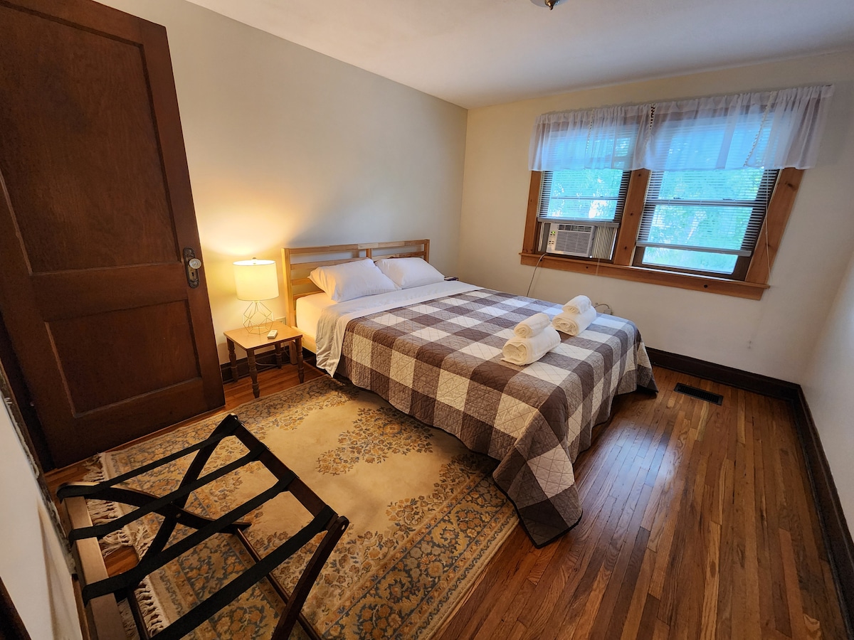 Ce duplex de 2 chambres et 1 salle de bain dispose d'une entrée privée, d'un patio et d'une cour arrière semi-privée. Les équipements comprennent un parking pouvant accueillir jusqu'à 4 voitures accessibles depuis l'allée derrière le logement, un lave-linge/sèche-linge privé, une connexion Wi-Fi, un Roku, des articles de toilette et une cuisine entièrement équipée. Un matelas gonflable double avec draps est également à votre disposition. Situé dans le village italien historique, à quelques pas du Short North Arts District et à distance de marche du centre des congrès.