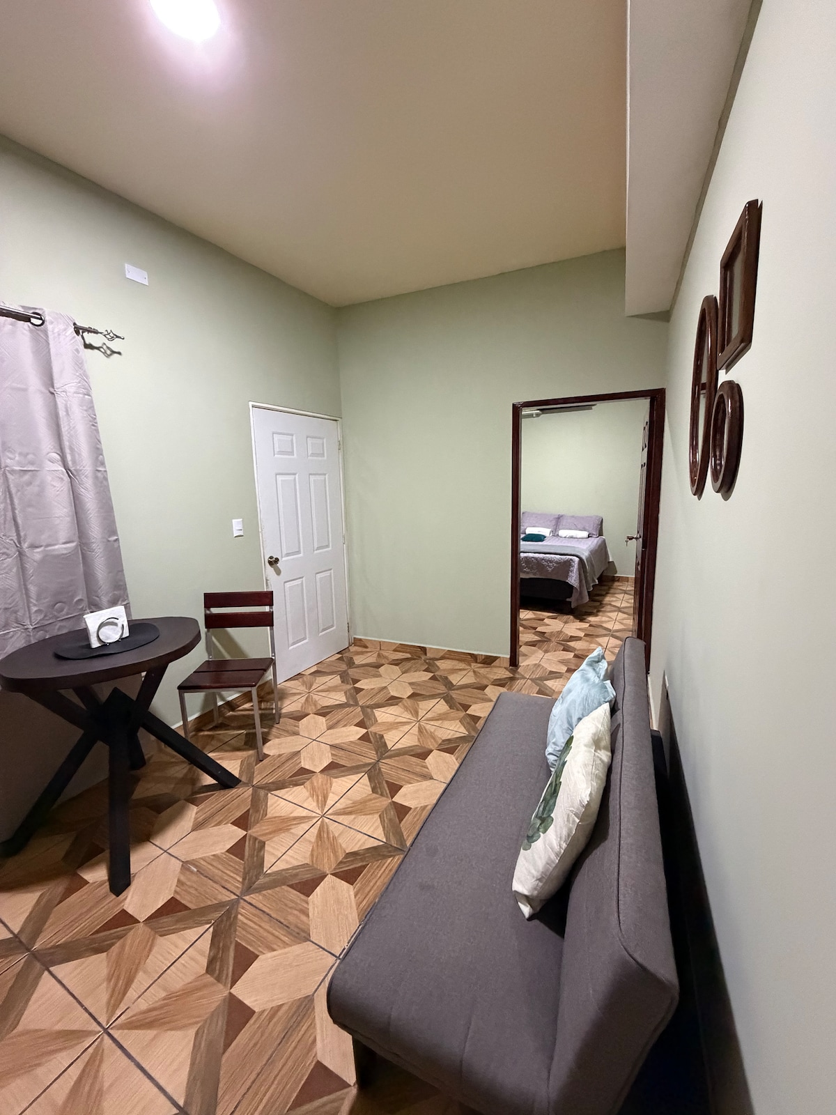 Appartement situé dans l'un des meilleurs quartiers de Tegucigalpa, avec sécurité privée, espace de circuit fermé, à proximité de toute une zone commerciale avec cinéma, restaurants, bars, plusieurs centres commerciaux, plus de quatre supermarchés à 5 minutes en voiture. Chambre simple avec lit queen size, armoire, télévision connectée avec câble standard et accès à de multiples plateformes de streaming. Cuisine équipée avec tout ce dont vous avez besoin, salon avec canapé-lit et grand parking. Aéroport Toncontin à 5 minutes