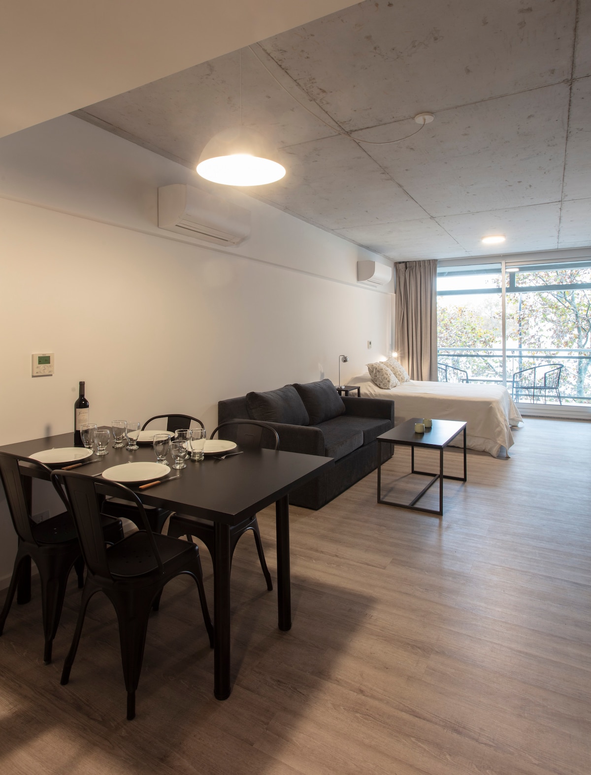 Departamento en Distrito Quartier Puerto Retiro CONSULTAR PRECIO DESAYUNO PARA 2 Personas COCHERA CUBIERTA (OPCIONAL CON COSTO) Moderno Departamento de techos altos totalmente equipado. SMART TV, WIFI y Cama Matrimonial SPA, Piscina Cubierta Climatizada ADULTOS, Piscina Externa con Solarium SAUNA, GYM, SALA DE PILATES y JACUZZI Ideal para viajeros que buscan un espacio con diseño, mucha luz y tranquilidad. Terraza vista al Rio. Restaurantes en PB SUM SALA DE REUNIONES SALA DE CONFERENCIAS