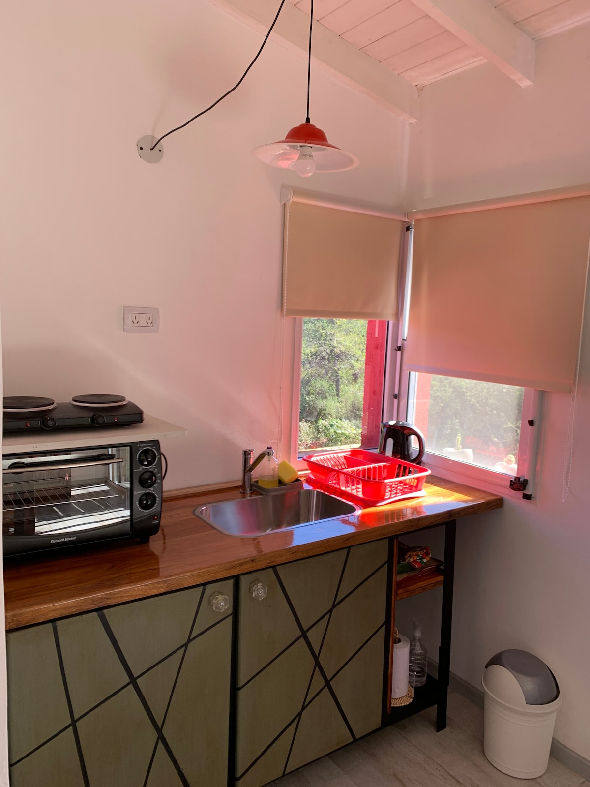 Cabaña de dos ambientes con vista a la sierra, ubicada en complejo de dos cabañas. Cuenta con un dormitorio con cama matrimonial y aire acondicionado frío-calor y un sofá cama en el living con ventilador de techo. Baño completo. Asador exterior individual. Estacionamiento en el predio (techado), Wifi y TV con Direct TV. Piscina descubierta. Horario de ingreso 14 hs, horario de salida 10 hs. Capacidad máxima permitida: 3 personas. No se aceptan mascotas.