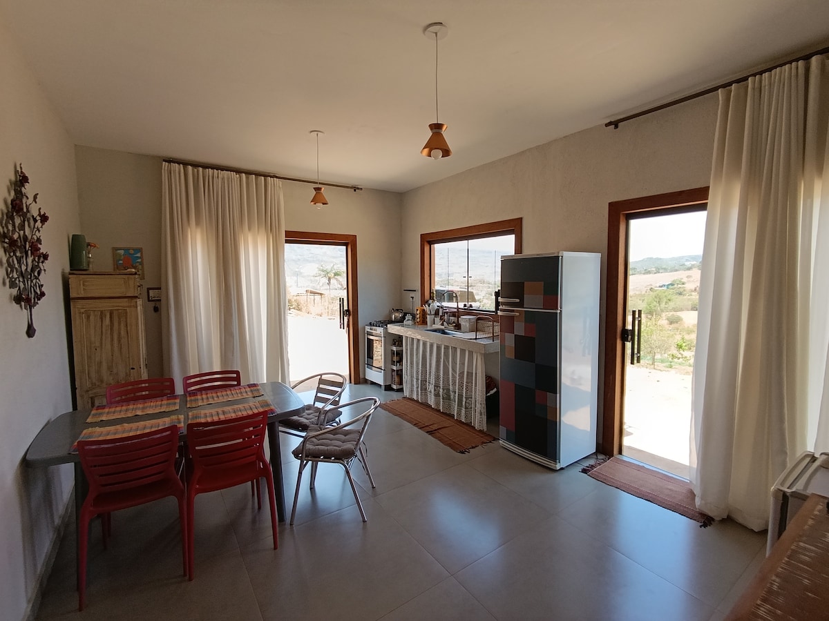 Localizada no distrito de Tabuleiro, à 15 km de Conceição do Mato Dentro. São duas casas geminadas. Casa Sempre Viva: 1 vaga, varanda, sala, cozinha equipada com geladeira e fogão, banheiro social. Quarto 1 com cama casal queen e uma de solteiro. Quarto 2: 2 camas de solteiro box que podem ser unidas. Área livre com ducha e churrasqueira portátil. Acomoda até 6 pessoas com sofá cama na sala. Fornecemos roupa de cama e banho de solteiro para cada hóspede. Aceitamos 1 Pet de pequeno porte.