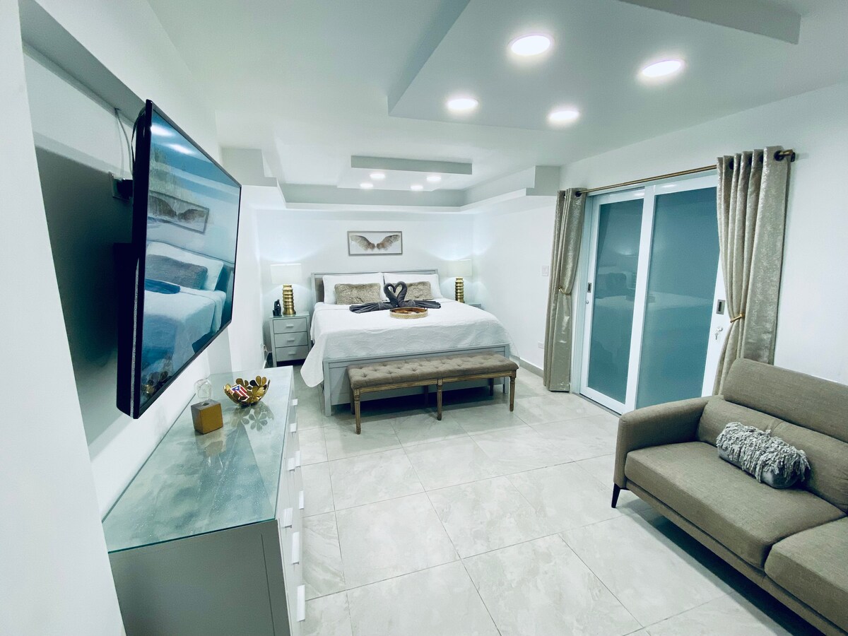Penthouse Apt. studio en ESJ Towers condo-hôtel à 5 minutes de l'aéroport, accès direct à la plage privée, piscine, nuit en direct, restaurants, centres commerciaux, supermarchés, parcs à proximité de tout. Vous apprécierez la plage, la vue sur les montagnes. Parfait pour les couples, les aventuriers en solo, les voyageurs d'affaires, les familles, les groupes. 1 parking privé intérieur affecté. Remarque : la piscine, le restaurant, sont fermés entre autres services pour rénovation, je vous prie de m'excuser pour la gêne occasionnée.