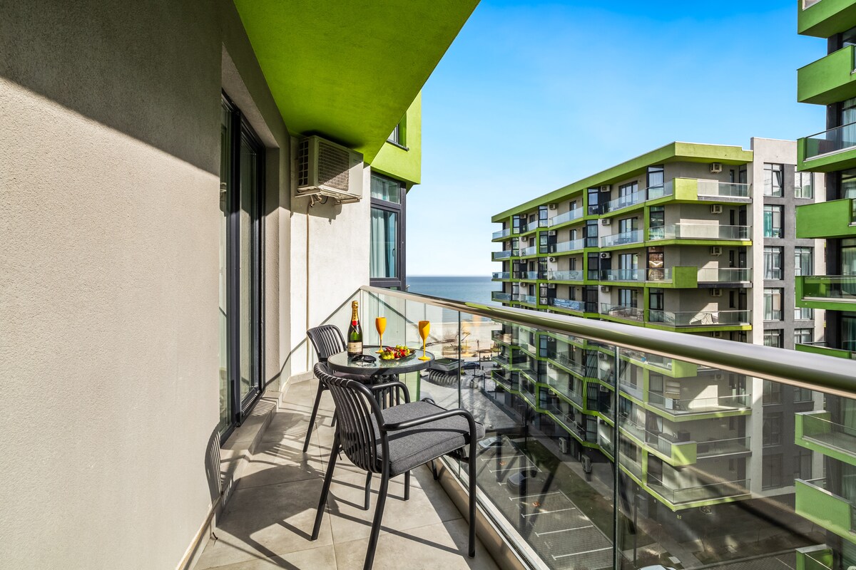 New Apartment with sea view and pool access is situated right next to the beach in Alezzi Beach Resort, in one of the best areas in Mamaia. You can sip your coffee in the balcony, watch the sunrise and feel the Black Sea breeze. The kitchen is fully equipped and you are welcome to cook. Nearby you can find the most diverse restaurants, coffee shops and clubs. Our guests will have also free access to the indoor and outdoor pools, fitness gym, SPA, playgrounds and pool for children.