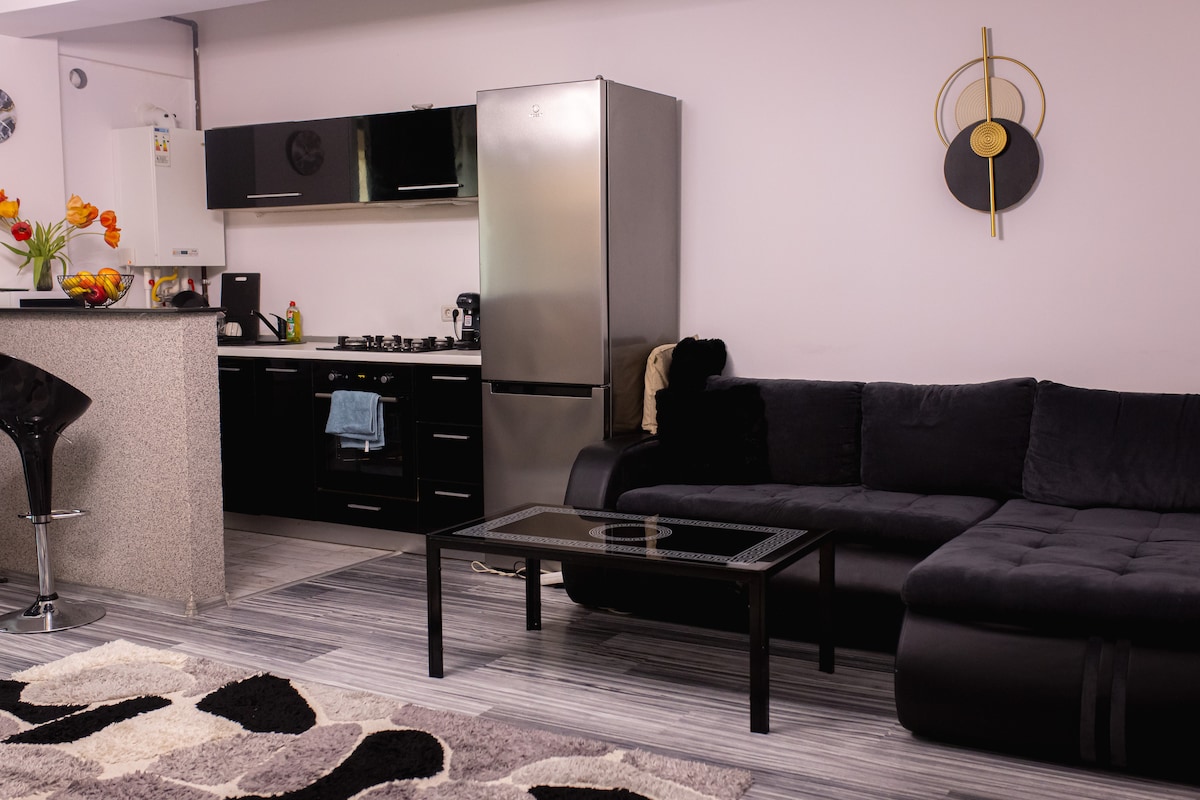 Appartement moderne et élégant, idéal pour 4 personnes, situé dans un quartier calme de Tomis Plus. Chambre avec lit King Size (220 x 220) et séjour avec canapé-lit confortable. Cuisine entièrement équipée, connexion Wi-Fi gratuite, climatisation, 2 téléviseurs avec Netflix. Salle de bain entièrement équipée (serviettes, gel douche, shampoing), lave-linge. Balcon avec table basse. Mega, Froo et Profi sont à 2 minutes du logement. À 5 minutes en voiture de Mamaia.