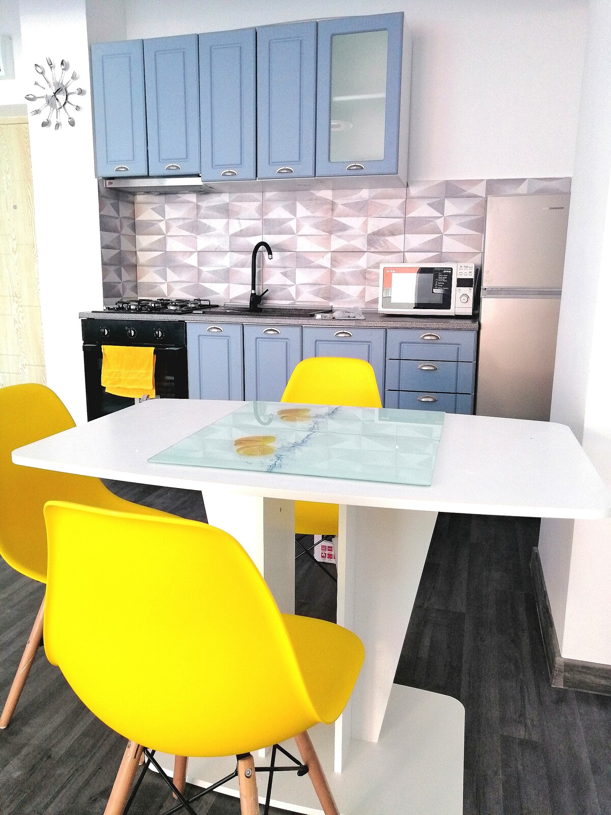 La meilleure façon de découvrir la beauté de Constanta est de rester dans son cœur ! Le studio est situé à seulement 10 minutes du Mamaia Resort et à 2 minutes du City Park Mall, du lac Tabacaria, du dauphinarium, de McDonalds et du village de vacances. Vous pourrez profiter de journées ensoleillées sur la plage et d'équipements tels que : cuisine entièrement équipée, télévision connectée, douche à l'italienne, mais aussi d'autres articles essentiels qui éteindront votre séjour en un merveilleux souvenir !