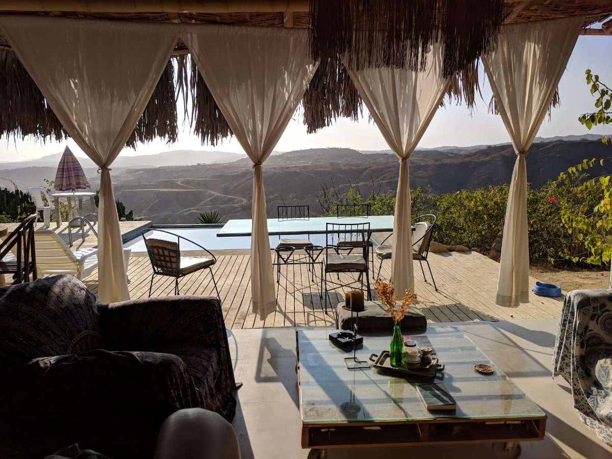 Muchik, est un village sauvage et durable qui se trouve sur les rives de la mer, entre les falaises, les jupes de campagne et les collines, l'expérience est naturelle. La vie sur le pont s'exerçant, méditant ou travaillant en paix seulement avec le bruit de la mer, beaucoup de liberté, des promenades sans fin sont la vitamine. Au pied de la Panamericana Norte, très proche des sanctuaires naturels à explorer tels que la forêt sèche d'Amotape, à 5 ou 25 minutes des spas de Punta Sal, Zorritos et Mancora. Vive el Norte!