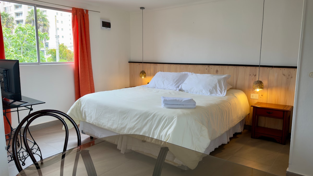 Profitez de la simplicité de cet hébergement calme et central, à 10 minutes à pied du phare de La Serena et à quelques pâtés de maisons de son centre historique, Appartement (5ème étage) neuf avec des commerces dans les environs et à seulement 2 pâtés de maisons, supermarché, et des magasins commerciaux qui facilitent votre séjour. Appartement équipé avec les fournitures de cuisine nécessaires pour votre séjour. Disponibilité de serviettes et service de blanchisserie supplémentaire.
