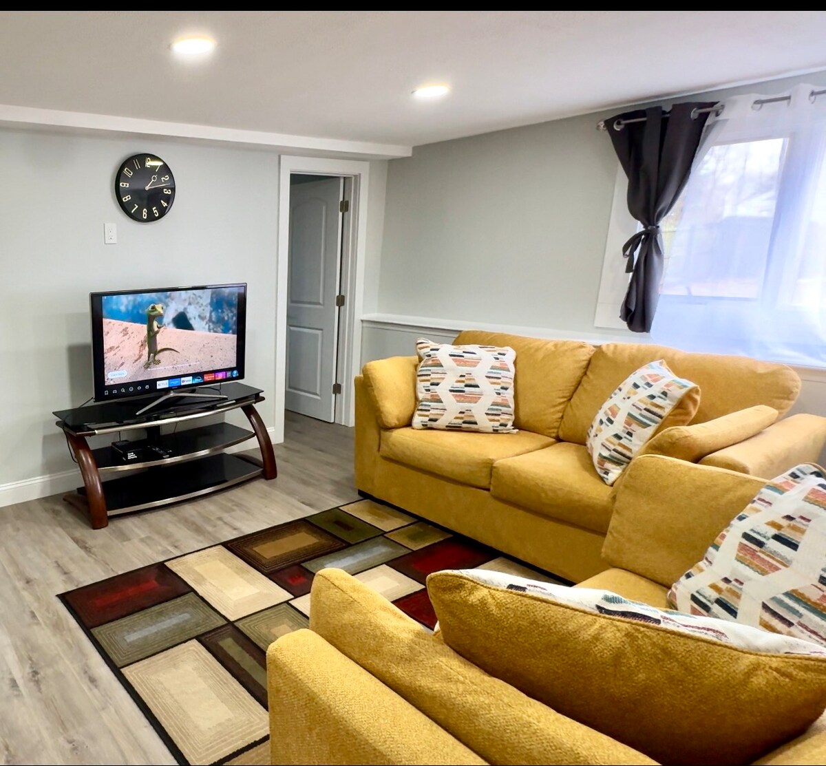 NEW ! Private renovated studio attached to a single family home. Private entrance queen bed w/full bathroom, sofa, 55”smartTV, kitchenette(no stove)free street parking in front of house.This is a drug free, non-smoking, no pets and no party unit. Minutes from Port Jefferson pier, LIRR, Connecticut Ferry, 15 min. to Mac Arthur airport. Shopping in Riverhead at Tanger Outlets a few exits from the LIE. 10min. to John T Mather Hospital & St Charles Hosp. Near Jakes 58 Casino and Top Golf.