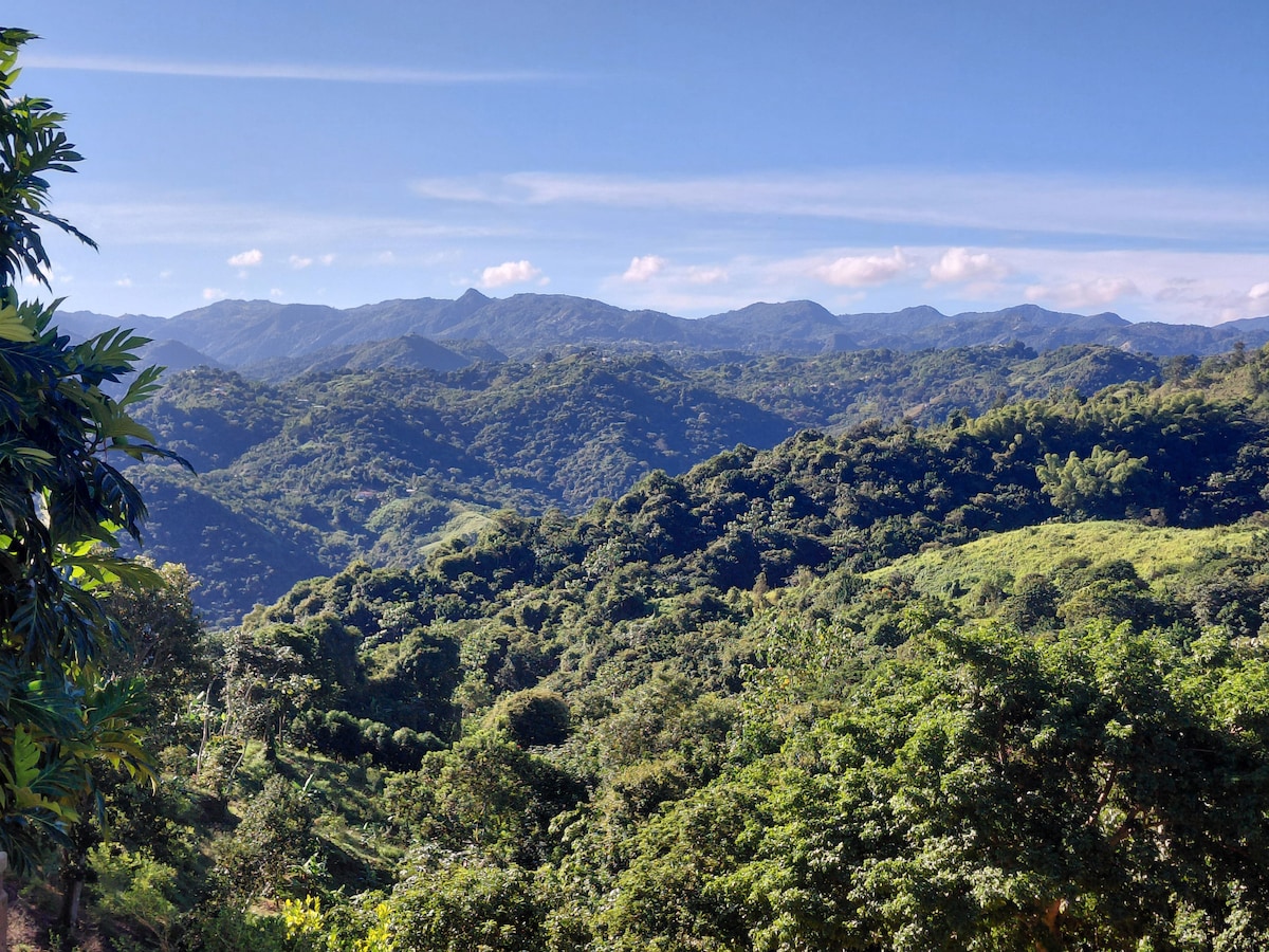 Cet appartement spacieux est au rez-de-jardin d'une maison de deux étages à proximité du centre-ville de Ciales où il y a un musée du café, des fermes biologiques, des grottes et des falaises d'escalade incroyables, des randonnées en haute montagne, de la baignade en rivière et un trajet rapide en voiture jusqu'à l'océan Atlantique. La chambre très propre et spacieuse est équipée de ventilateurs de plafond, d'une douche extérieure chauffée et d'une cuisine complète avec grand réfrigérateur, cuisinière à gaz et four. Les propriétaires vivent sur place et sont disponibles pour vous aider à vous enregistrer et à planifier votre voyage.