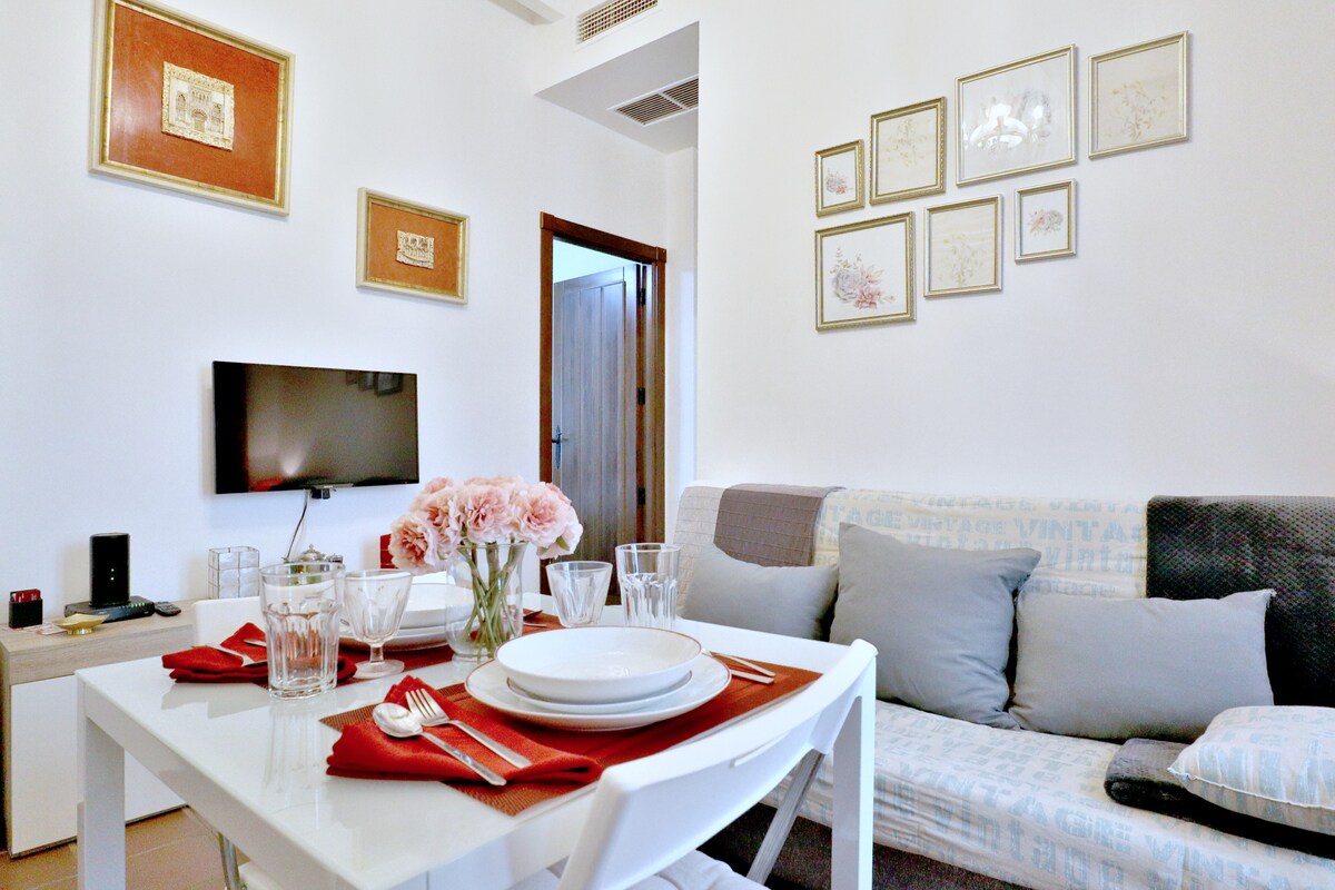 Appartement moderne et confortable. Extérieur et lumineux. Cuisine très bien équipée, chambres spacieuses et confortables et une salle de bain moderne. De plus, bien qu'il soit situé au cœur du centre historique de Cordoue et qu'il dispose de toutes sortes d'attractions et de commodités, la rue où il se trouve est pratiquement piétonne, de sorte que la tranquillité est garantie.