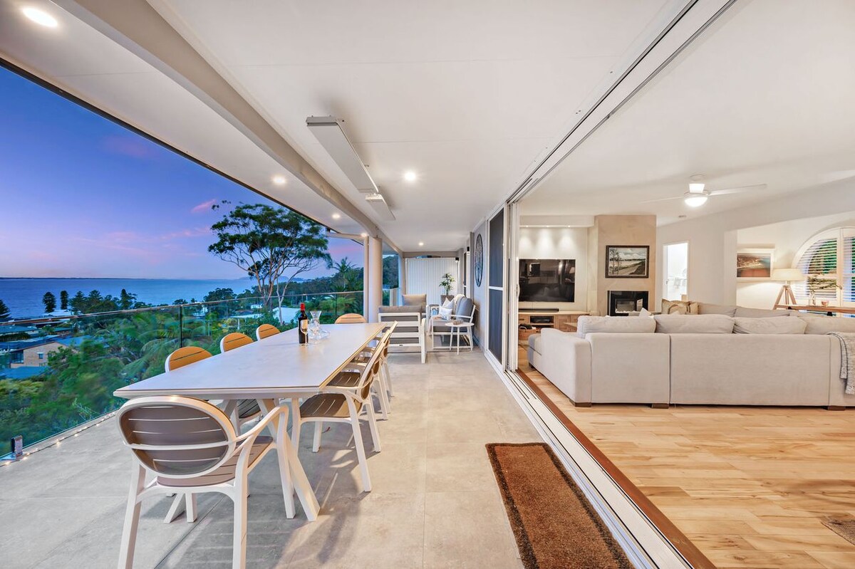 Vue imprenable, à seulement quelques minutes à pied de la plage, à proximité du quartier des affaires, du centre commercial, de la marina et des restaurants. Rénovation neuve par un constructeur de qualité primé et un architecte d'intérieur spécialisé. Immaculée et conçue pour profiter de la vue panoramique à couper le souffle sur Nelson Bay. Blue Bay Views 1 (en bas) et Blue Bay Views 2 (en haut) sont deux logements Airbnb privés et séparés. Pour voir Blue Bay Views 1 (en bas), suivez le lien : https://bit.ly/3R6vzXS