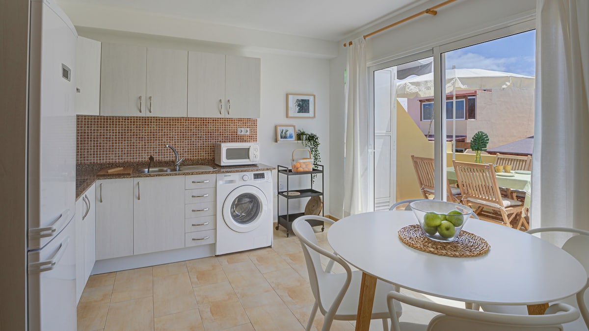 Cet appartement spacieux est situé dans un complexe résidentiel calme, à seulement 12 minutes à pied du centre de Corralejo. L'appartement dispose d'une grande terrasse, parfaite pour prendre le petit déjeuner à l'extérieur ou passer un coucher de soleil romantique avec un verre de vin. Il bénéficie d'un emplacement privilégié, avec des cafés et des restaurants aux alentours. Deux grands supermarchés dans le quartier (1,1 km). L'appartement dispose d'une alarme installée. Café, sucre, huile d'olive, épices et une multitude d'articles pour l'hygiène personnelle sont également disponibles.