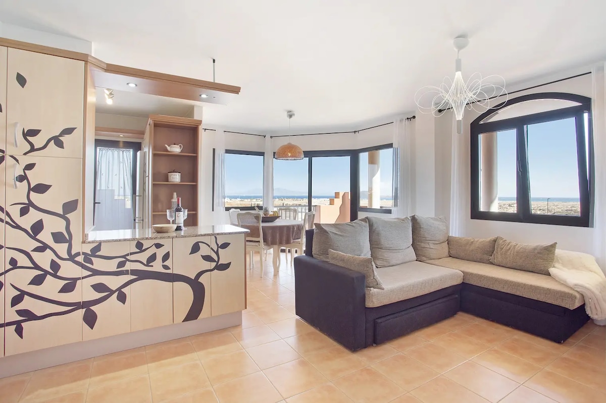 Apartment exclusively for couples with sea view, WIFI, near beaches and in the center of Corralejo. Suite with spacious bedroom with king-size bed and Android TV lcd 32" Spectacular views on both sides, even from the bed, through extensive windows, being able to see the volcanoes and beaches. Full equipped kitchen Included in each stay: Towels: 2 shower towels + 1 sink towel per person Sheets: 1 set of sheets for one week and 2 sets for more than a week Toilet paper: 2 rolls per bathroom