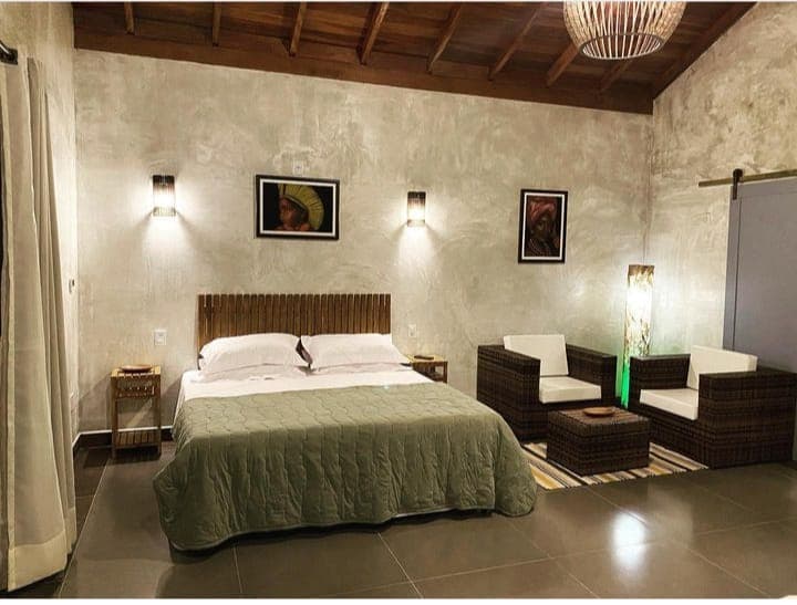 Le Loft Spa Kaámomila fait partie du Kaá Ipira Vila Spa. Un lieu de charme de 30 000 m2 et seulement trois lofts sophistiqués préparés pour le self-spa. Le loft dispose d'une baignoire avec 200 micro-trous de massage à air, d'un bain à remous pour les pieds et de divers cosmétiques végétaux pour que vous puissiez faire vos propres rituels de phytothérapie. De plus, l'espace commun de notre spa village dispose d'un bain à remous, d'un sauna, d'une piscine extérieure et d'un beau jardin avec des fleurs et des herbes à cueillir et à utiliser dans vos bains. Détendez-vous dans ce loft élégant.