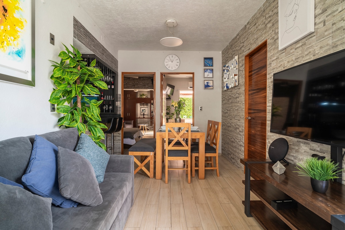Bel appartement entier et équipé, au rez-de-chaussée, offre un séjour de repos, tranquillité, sécurité, agréable et plaisant, à 100 mètres de l'avenue principale d'Acapulco, La Costera Miguel Alemán. Un appartement très bien situé, il dispose de plusieurs établissements à proximité, y compris Walmart, Oxxo, Domino's pizza, vips, station-service, restaurants, casinos, la discothèque emblématique Baby'O et comme si cela ne suffisait pas, nous sommes à 2 minutes des plus belles plages d'Acapulco.