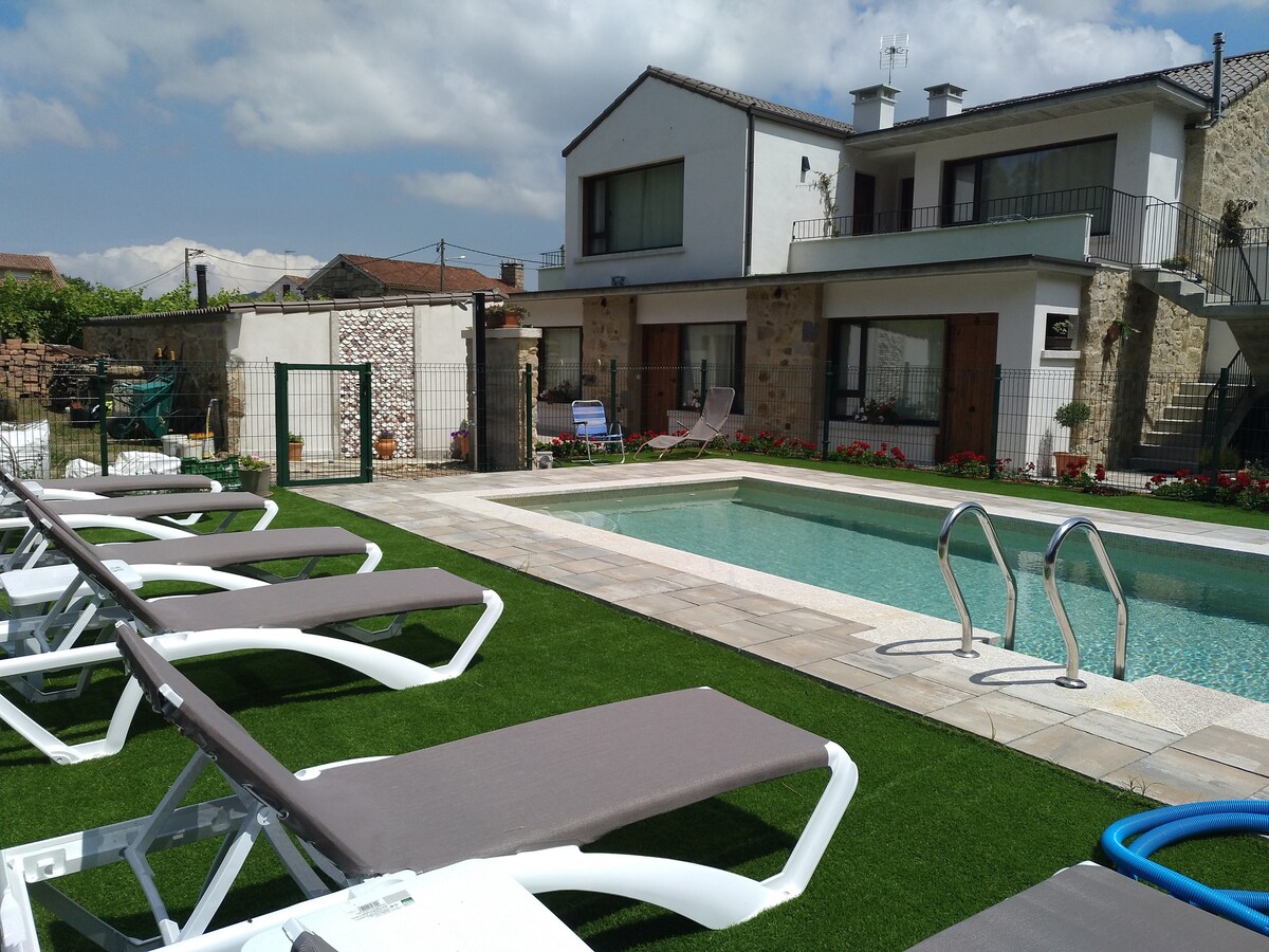 Maison de campagne boutique avec 150 ans d'histoire, très bien située pour visiter toute la Galice. La maison est située dans une vallée à 15 km de Santiago, à 20’ des plages et à moins d'une heure de plusieurs parcs naturels. La ville de Bertamiráns où vous trouverez toutes les commodités est à 3 km. La maison est idéale pour les familles car elle dispose de 7 chambres, 5 salles de bains et plusieurs espaces de vie. Grands extérieurs avec piscine, patios, barbecue, porches et jardins. Aire de jeux et parking privé.