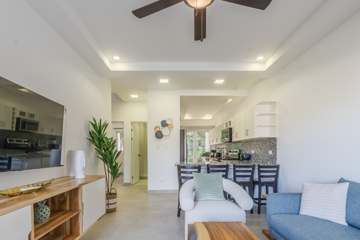 Bienvenue dans notre belle maison de ville de deux chambres et deux salles de bains, la retraite parfaite pour profiter du meilleur de Tamarindo ! Située à quelques pas de l'épicerie, du skate park, des cafés et des restaurants, cette charmante propriété est un choix idéal pour les couples et les petites familles à la recherche des vacances ultimes à la plage. L'espace décoré avec goût offre un salon confortable et une cuisine entièrement équipée, offrant tout ce dont vous avez besoin pour vous détendre et préparer des repas pratiques.