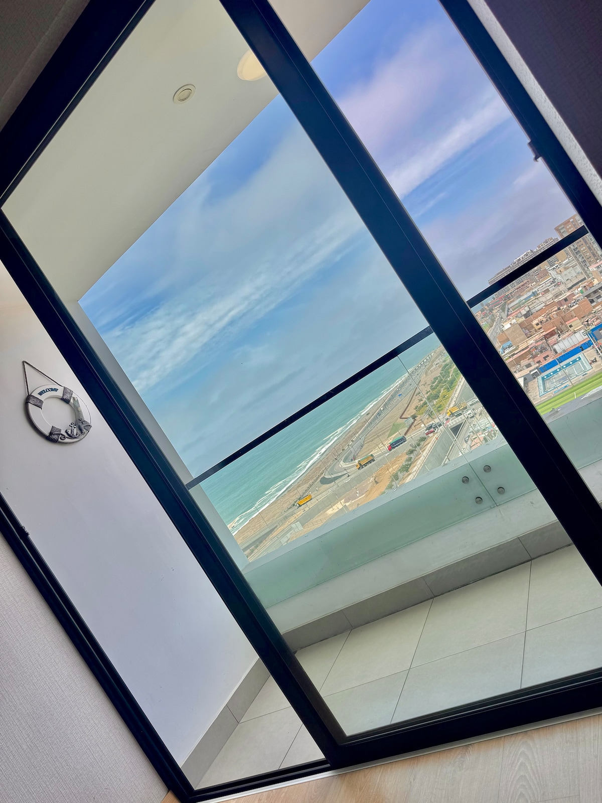 Un refuge face à la mer conçu pour deux. Situé à San Miguel, à seulement 15 minutes de l'aéroport Jorge Chávez et à 5 minutes du centre de spectacles Arena 1 sur la côte verte. Il dispose d'une cuisine équipée, de 2 salles de bains complètes et d'un balcon privé face à la mer. Parfait pour les concerts, les escapades romantiques, les vacances ou les voyages. Avec WiFi rapide, Smart TV avec comptes Netflix, Disney et Star+ pour un séjour confortable et agréable. Garage couvert avec supplément.