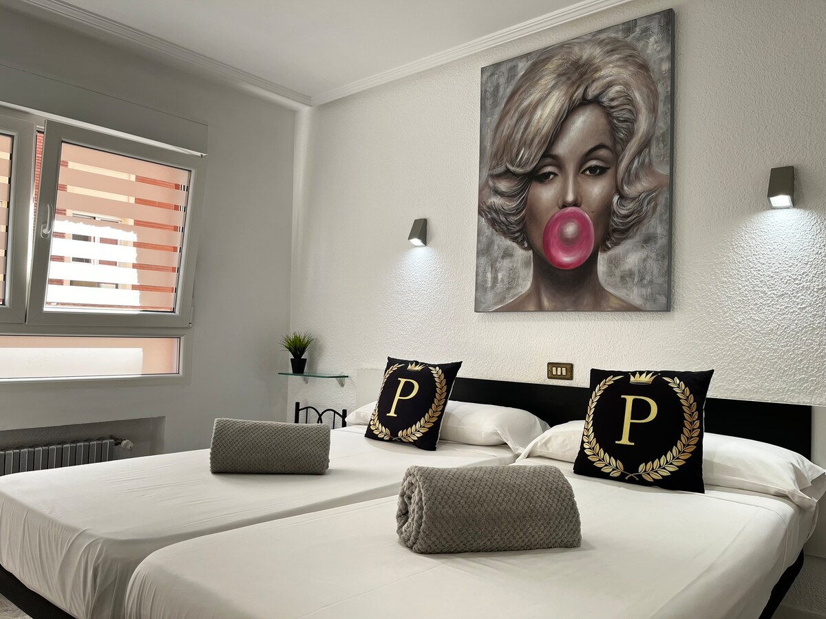 Habitacion con capacidad para 2 personas compuesta por una amplia cama de 150. También dispone de baño privado, nevera y un pequeño balcón con vistas a la calle. *se aceptan mascotas,consultar condiciones.