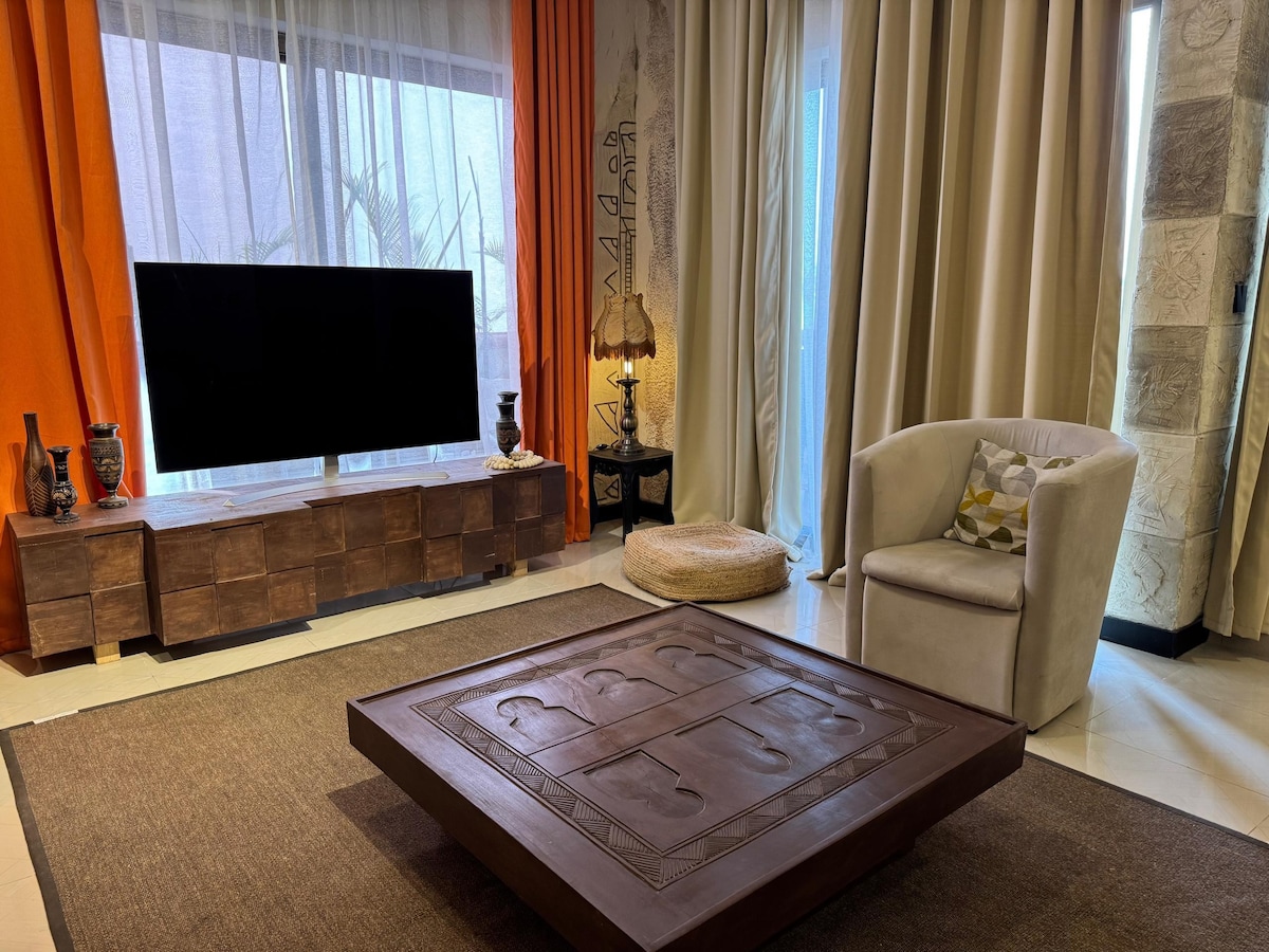 Ce logement affiche un style résolument unique. Situé à 300m de la mer dans un quartier résidentiel sécurisé, il est proche du plus grand centre commercial, de l’aéroport, de l’ambassade des USA et de celui de la France. Il affiche un style Soft, Frais et Unique. C’est l’endroit idéal pour passer ses vacances.